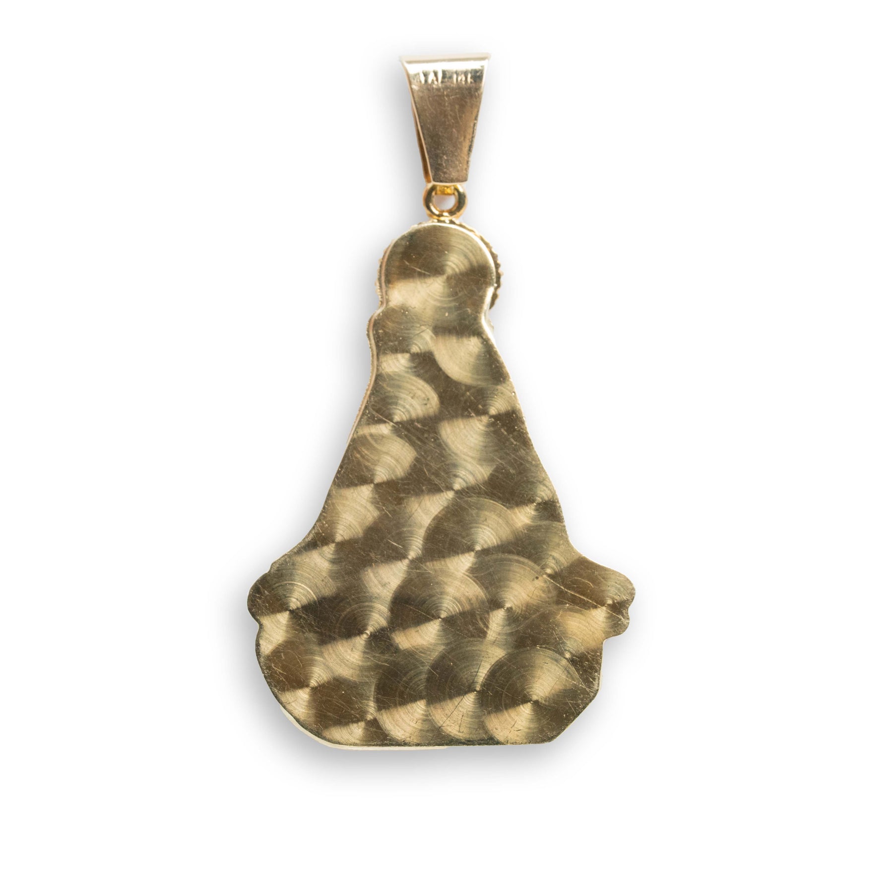 The pendant’s design captures the essence of Our Lady of Charity, also known as "La Caridad del Cobre," a symbol of hope, love, and protection. Whether worn as an expression of faith or as a meaningful accessory, this pendant is sure to make a powerful statement. Its size is ideal for both daily wear and special occasions, giving you the versatility to pair it with other gold chains or jewelry pieces from your collection.