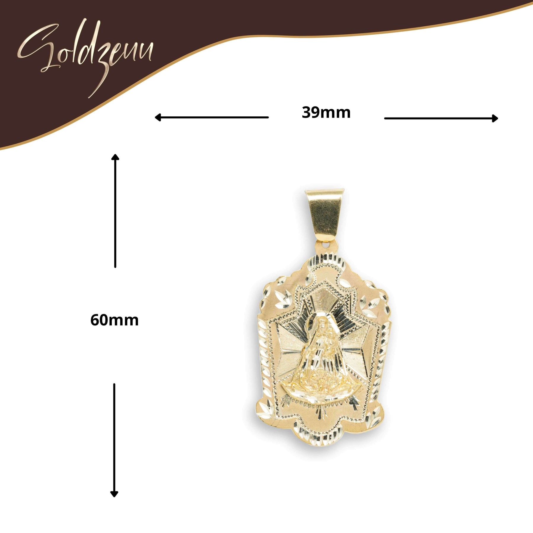 The pendant’s detailed design is carefully handcrafted to reflect the beauty and symbolism of Lady Charity. Its versatile size and stunning finish make it a perfect gift for those looking for a pendant that combines meaning, style, and tradition. Wear it alone or pair it with other Goldzenn pieces to complete your collection.