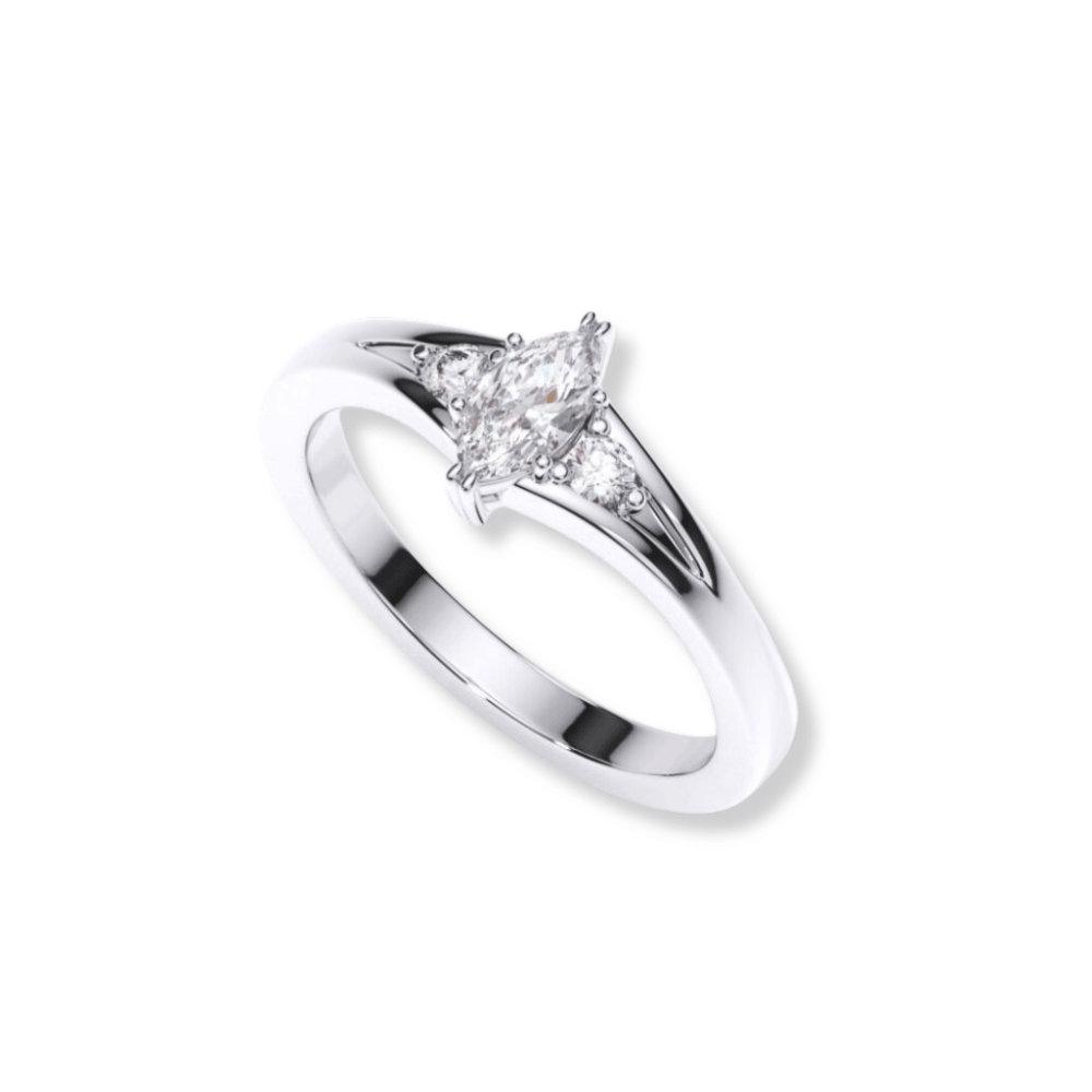 Marquise Lab Diamond Three-Stone Engagement Ring in Platinum Finish