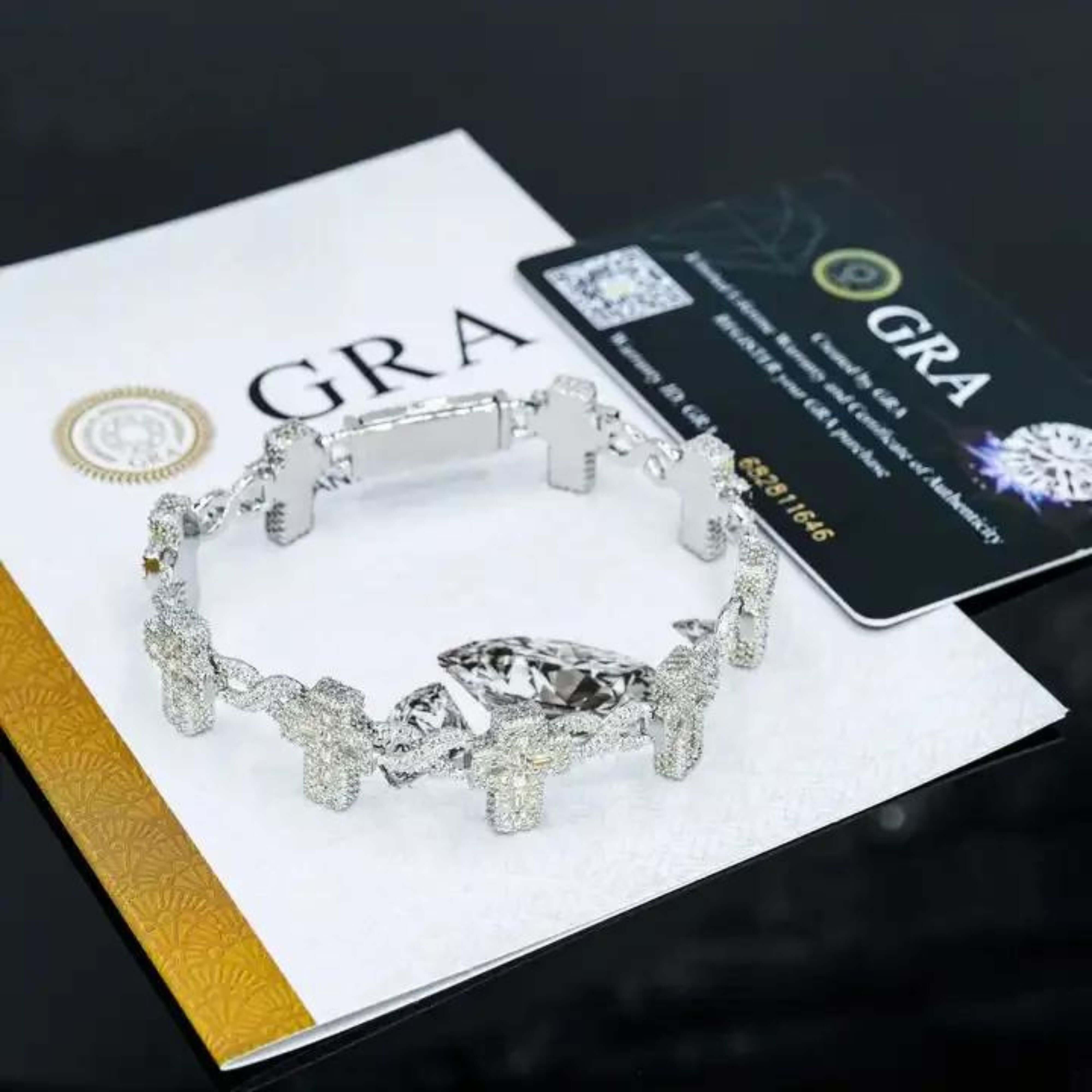 The Moissanite Cross Bracelet in 925 Sterling Silver is a timeless expression of faith and elegance. Featuring a beautifully designed cross centerpiece encrusted with dazzling moissanite stones, this bracelet delivers a radiant brilliance that rivals diamonds. Crafted from high-quality 925 sterling silver, the bracelet is polished to perfection, combining durability with luxurious style.