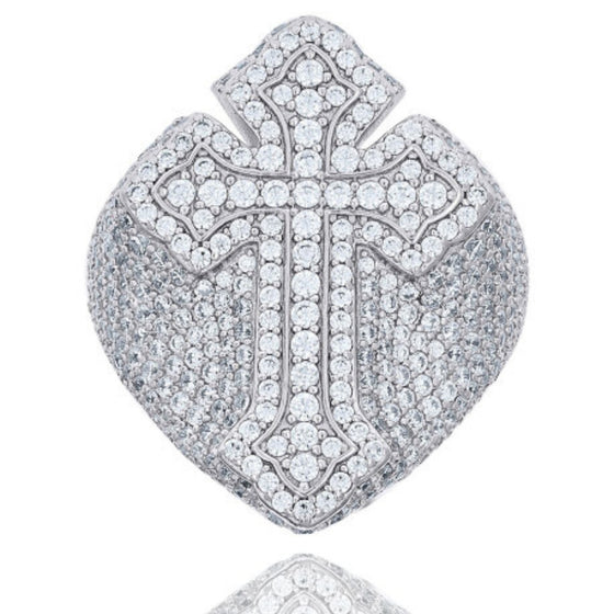 This Moissanite Cross Religious Ring features a classic cross motif pavé-set with brilliant round moissanite stones on a high-polish band. Sleek and spiritual, it combines modern sparkle with timeless faith symbolism.
