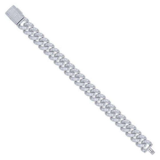 alt=" Shop the Moissanite Cuban Link Bracelet - 12mm. Made with VVS moissanites & 925 sterling silver. Bold, elegant, and perfect for any occasion. Free shipping available! "
