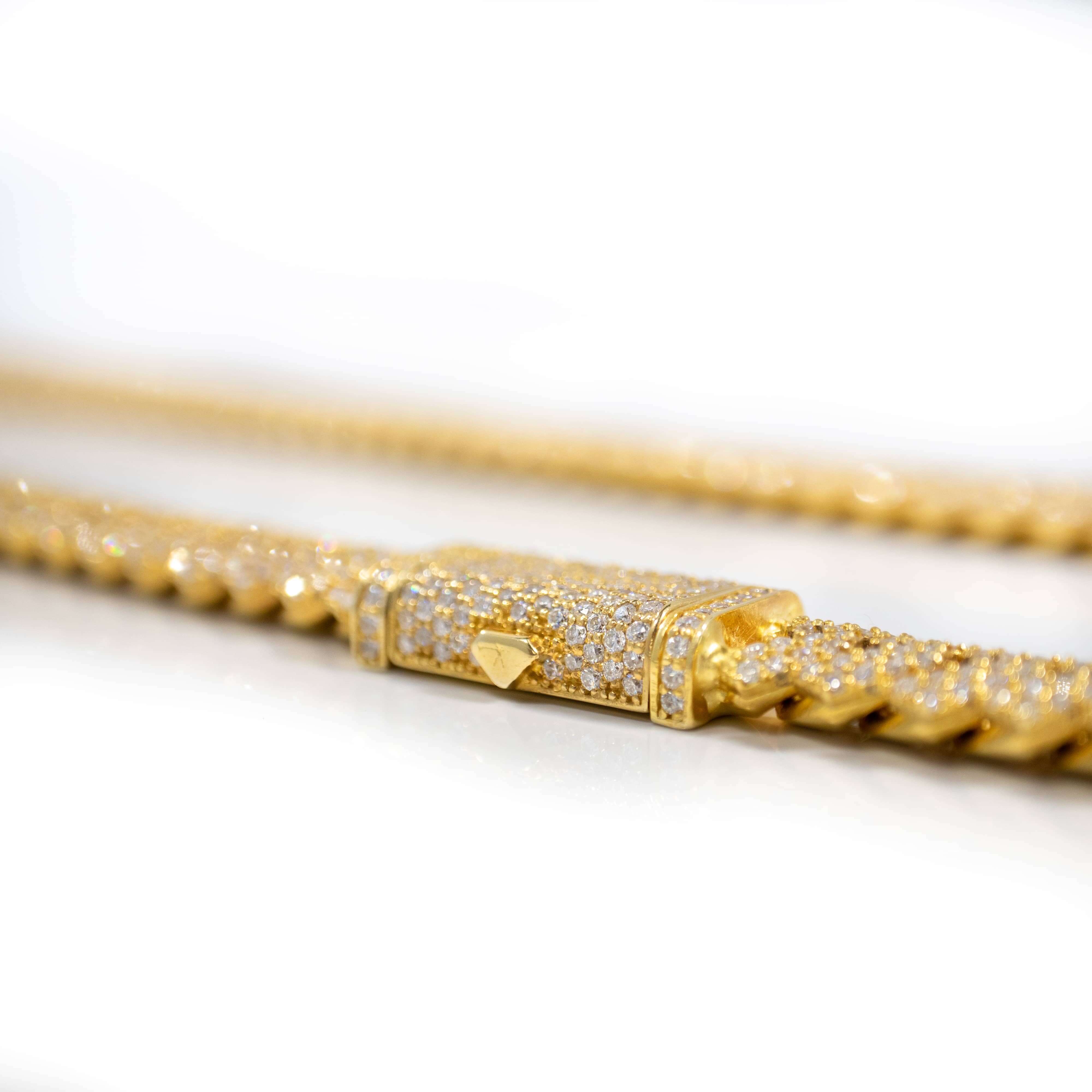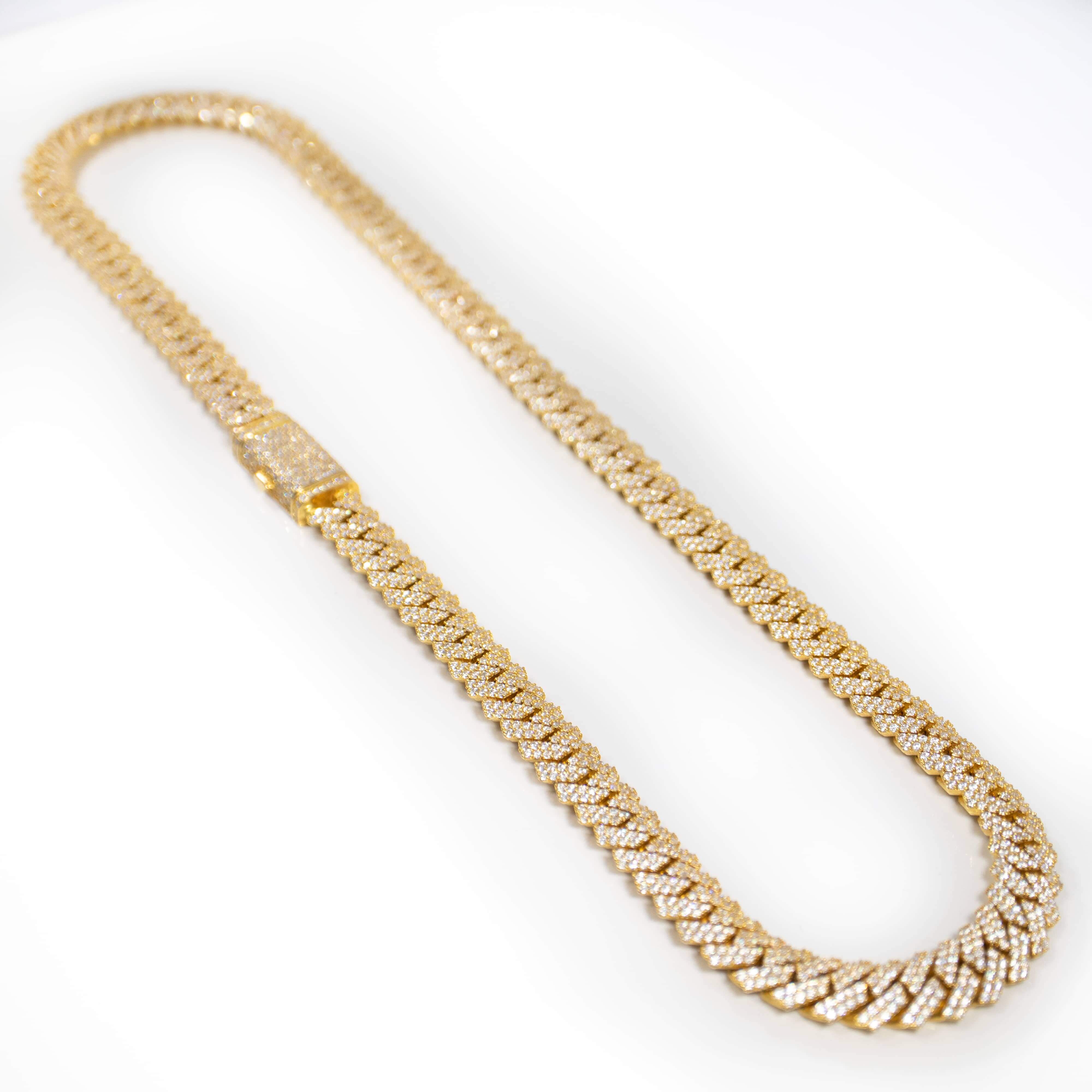 Every Diamond Cuban Link Chain is a fusion of Miami’s bold spirit and Italian precision. Using the richest European gold and advanced machinery, our artisans hand-set each stone—whether natural, lab-grown, or moissanite—into flawlessly uniform links. The diamonds are precision-cut for maximum sparkle and secured with tension-setting techniques perfected over decades. Choose lab-grown for eco-conscious elegance, moissanite for fiery affordability, or natural diamonds for timeless heirloom quality. No compromises, just brilliance.