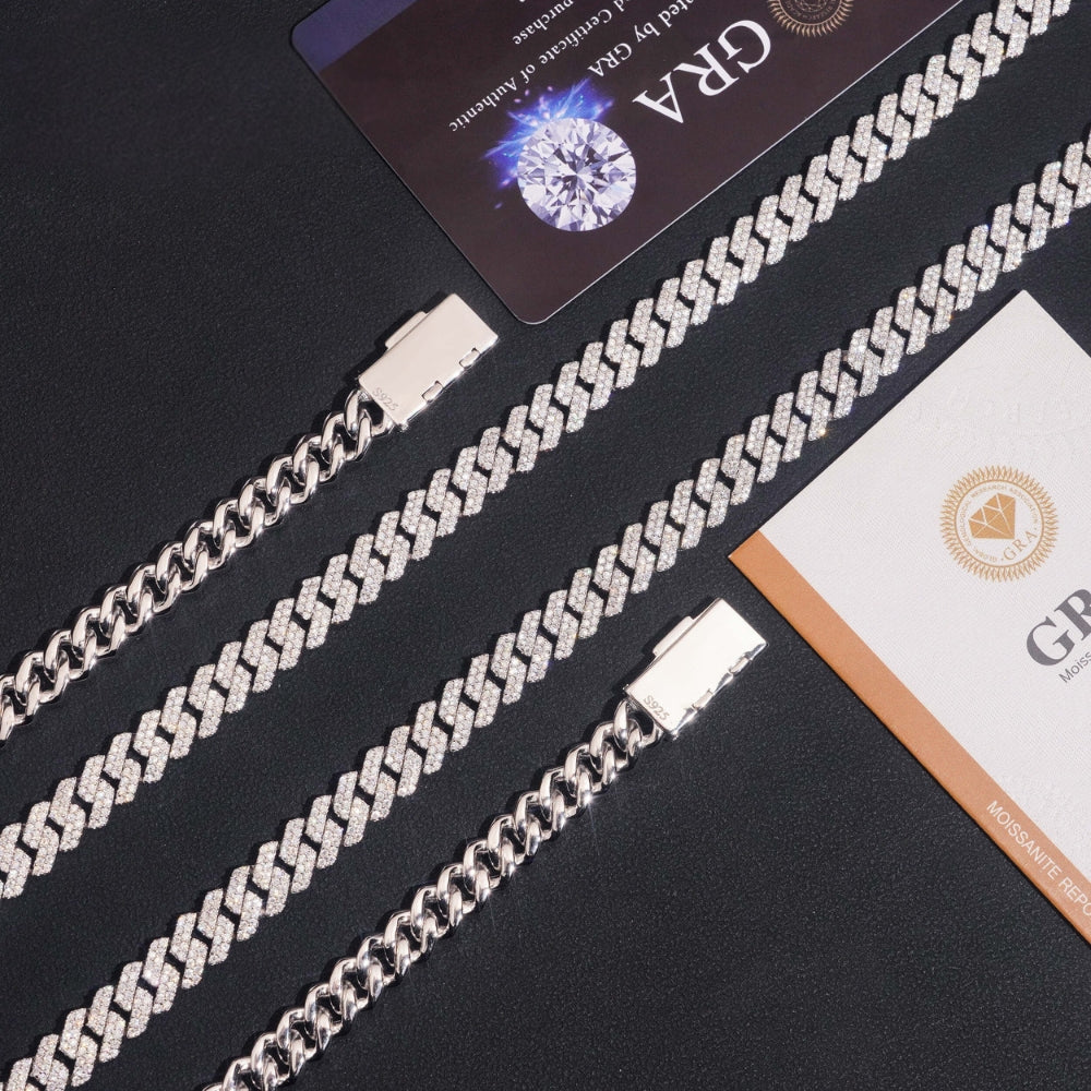 Moissanite Cuban Link Chain - 12mm-15mm in 925 Sterling Silver