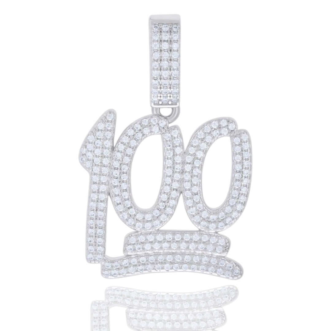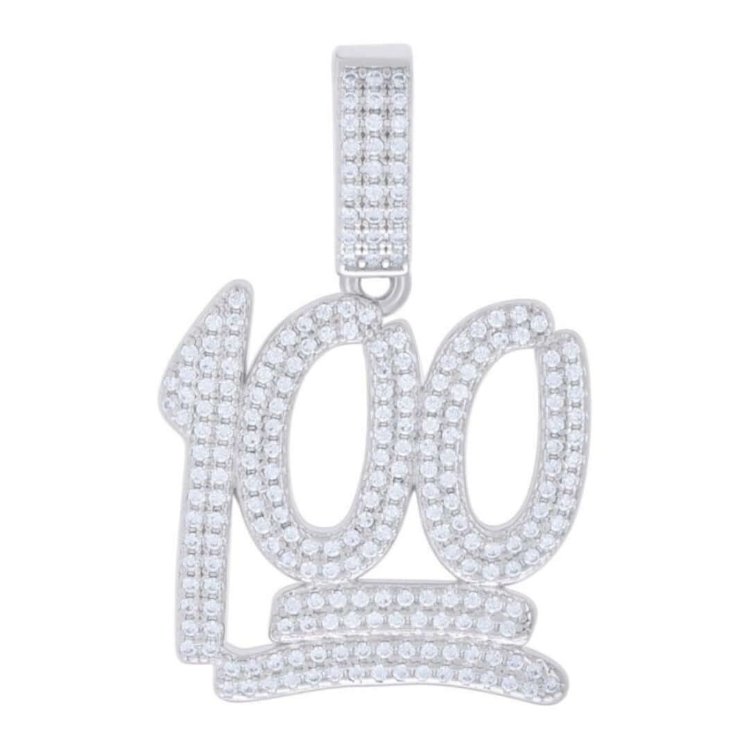 Alt=" Crafted in 925 silver with VVS D-color moissanites, GOLDZENN’s Score 100 Charm Pendant offers modern elegance. Hypoallergenic, tarnish-resistant & fashion-forward."
