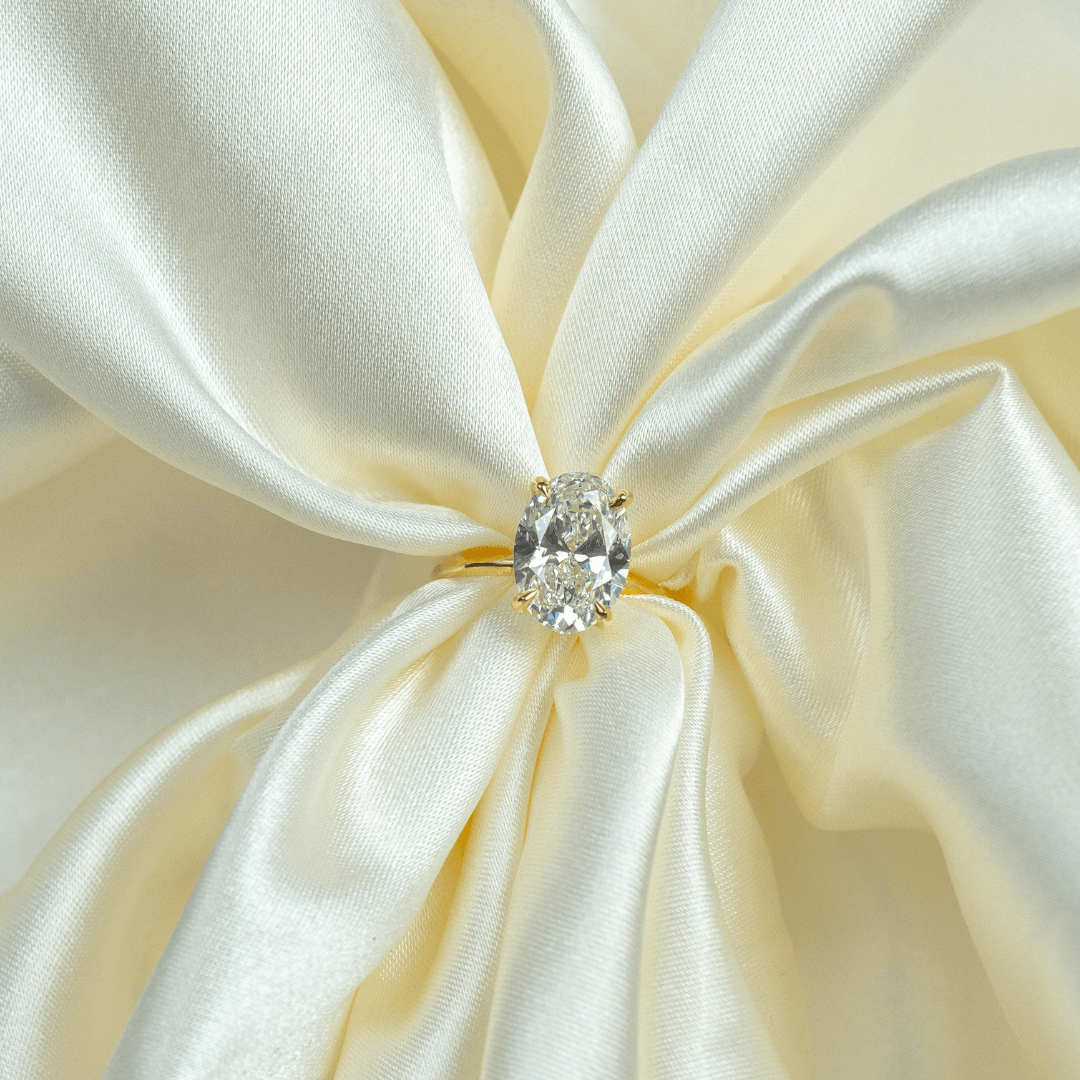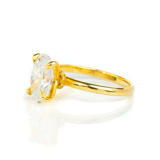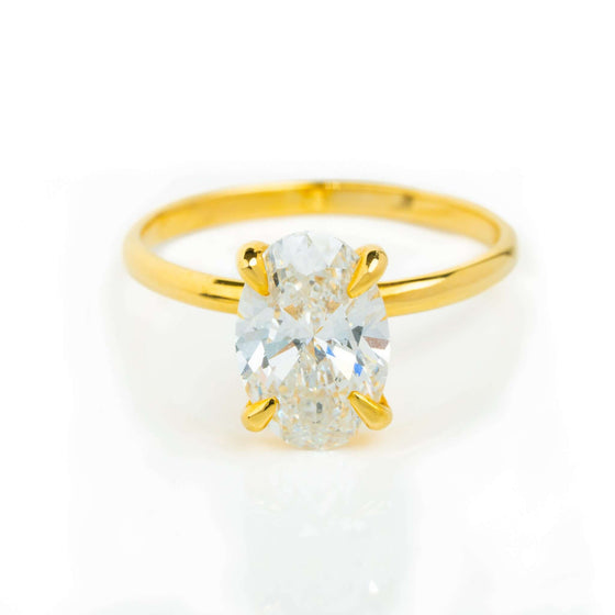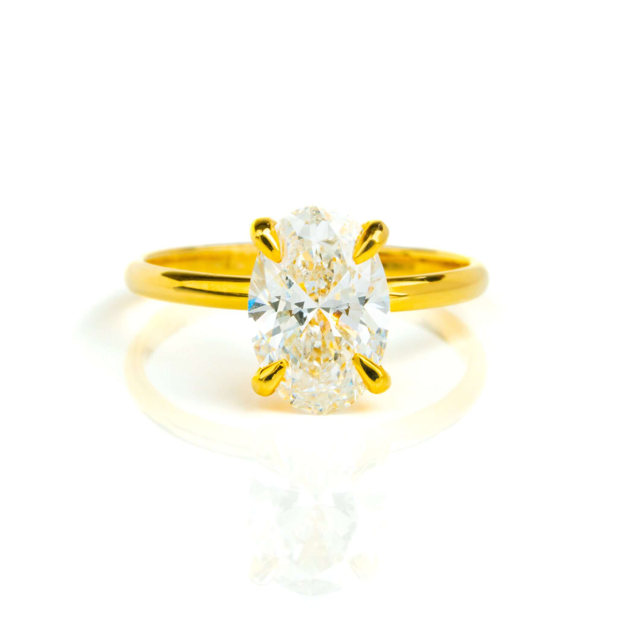 alt=" Explore the 2.12ct Oval Lab Diamond Engagement Ring. A sophisticated women’s engagement ring featuring a lab-grown oval diamond in 14K yellow gold. "