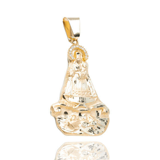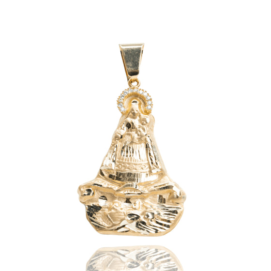 Caridad Del Cobre Pendant with CZ Stones - 14k Solid Yellow Gold