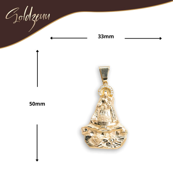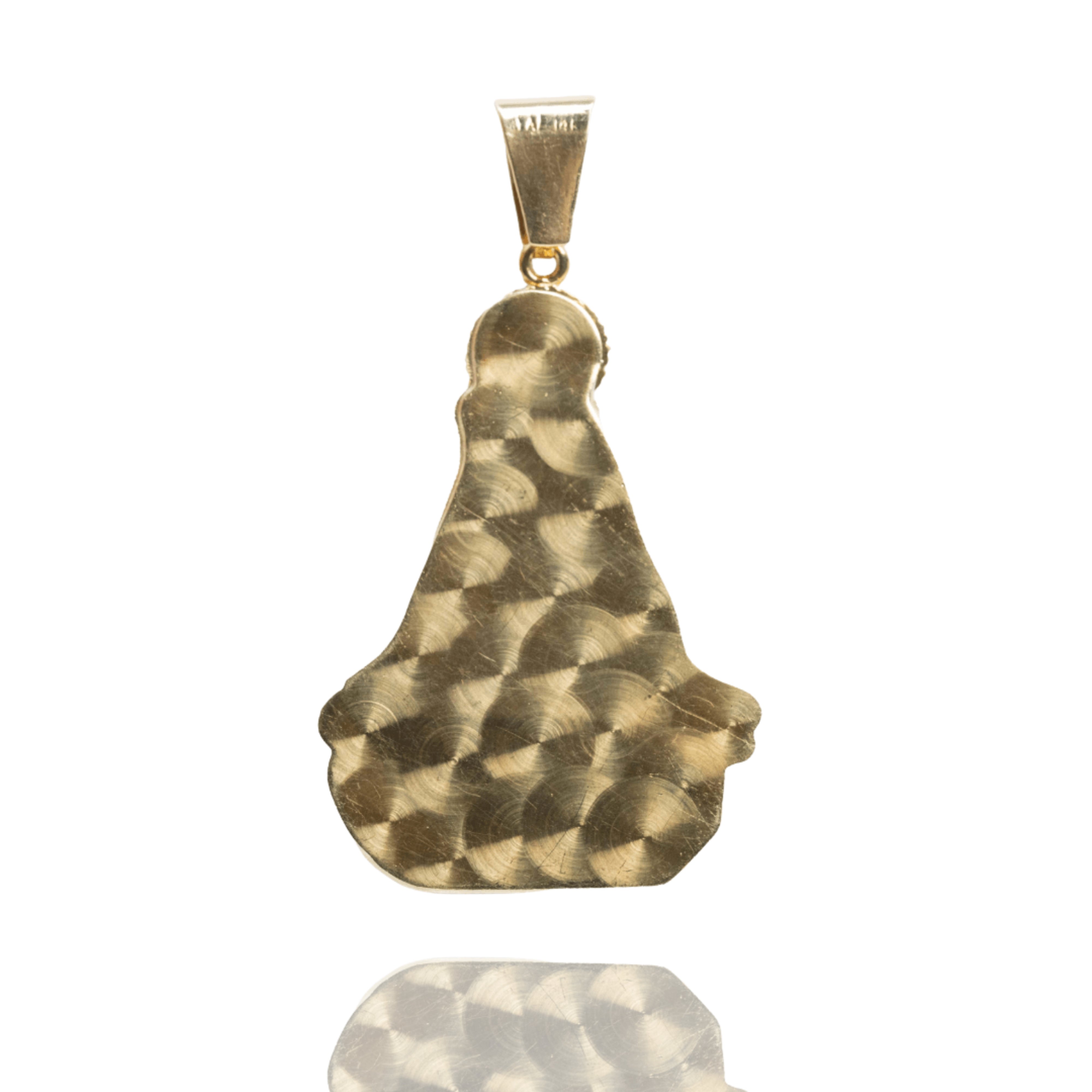 The pendant’s design captures the essence of Our Lady of Charity, also known as "La Caridad del Cobre," a symbol of hope, love, and protection. Whether worn as an expression of faith or as a meaningful accessory, this pendant is sure to make a powerful statement. Its size is ideal for both daily wear and special occasions, giving you the versatility to pair it with other gold chains or jewelry pieces from your collection.