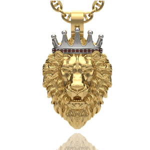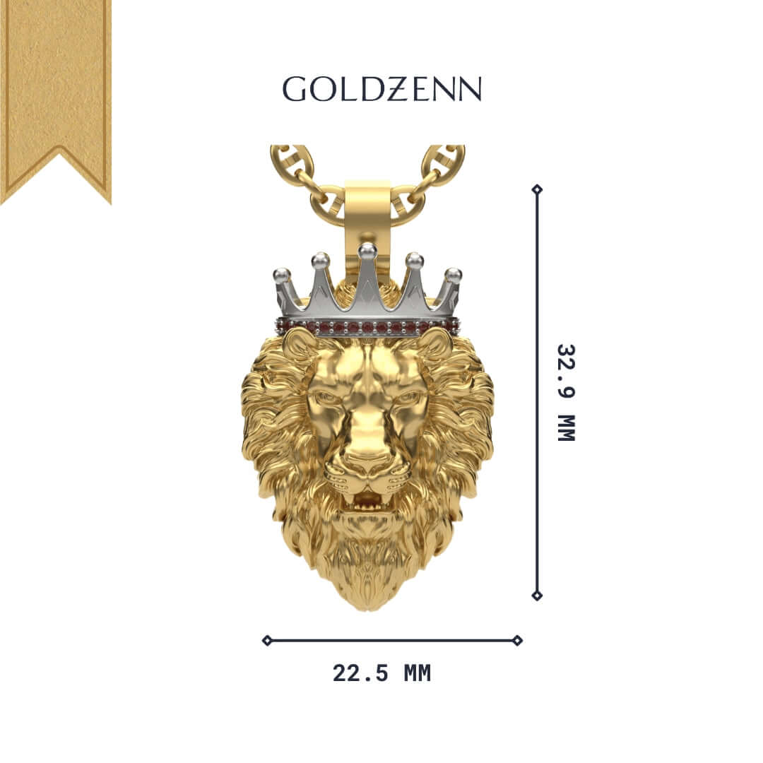 The Regal Lion Pendant with Crown in 14K Gold is a striking symbol of strength, leadership, and royalty. Crafted in radiant 14K gold, this intricately designed pendant features a majestic lion adorned with a detailed crown, showcasing power and sophistication. Its bold design makes it a standout accessory for those who want to make a statement.