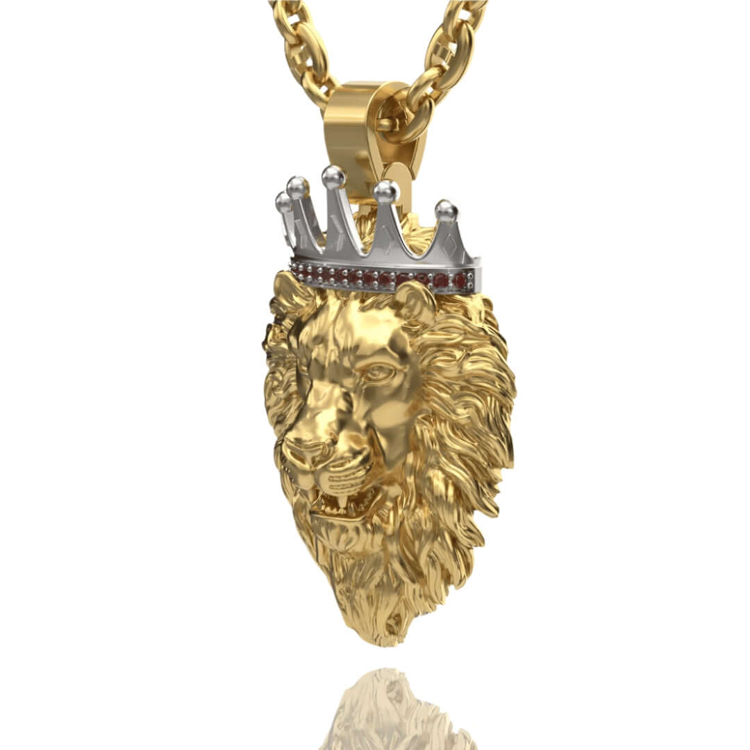 Regal Lion Pendant with Crown - 14k Gold
