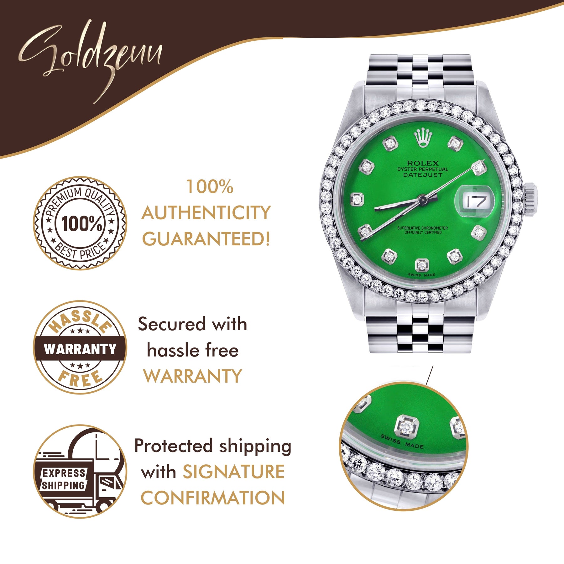 Explore Goldzenn's curated collection of luxury watches. Discover timepieces from the world's most prestigious brands, each representing the pinnacle of craftsmanship, precision, and style. From iconic designs to innovative complications, find the perfect watch to elevate your wrist and make a statement. Browse our selection and experience the art of horology.