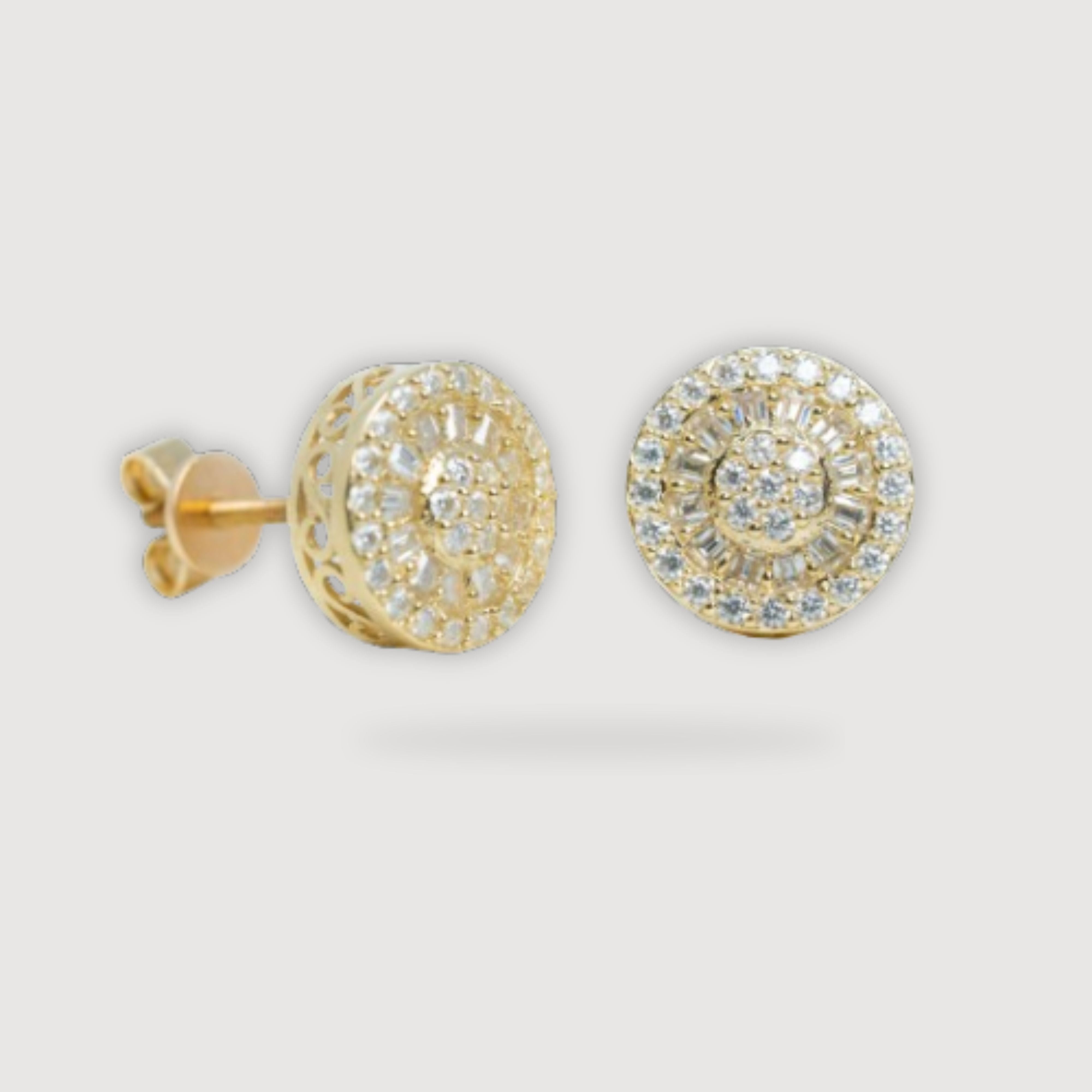 Round Baguette Stud Moissanite Earrings- 10k Yellow Gold