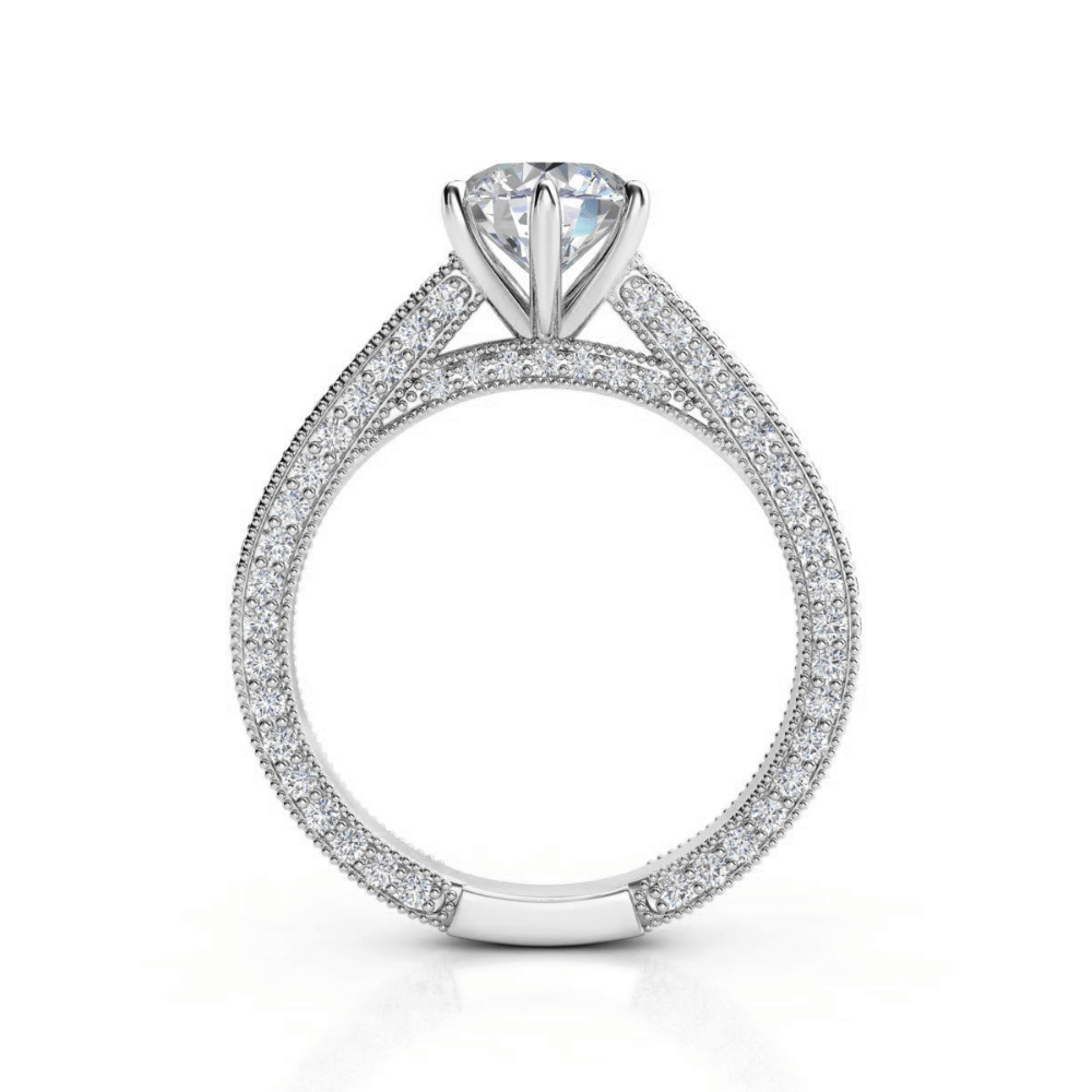 alt=" Explore the Prestige Solitaire Band. Featuring a 3.00 CT lab-grown diamond in a sleek 14K gold band, this luxury engagement ring redefines timeless elegance. "