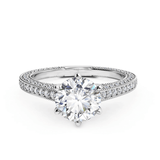 14k Round Lab Diamond Engagement Ring - Prong Setting