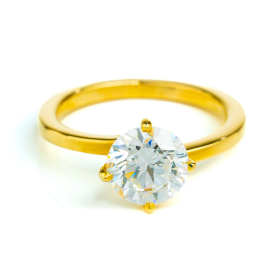 alt=" Discover the 2.09ct Round Lab Diamond Solitaire Engagement Ring. A timeless women’s engagement ring featuring a round lab diamond in 14K yellow gold. "