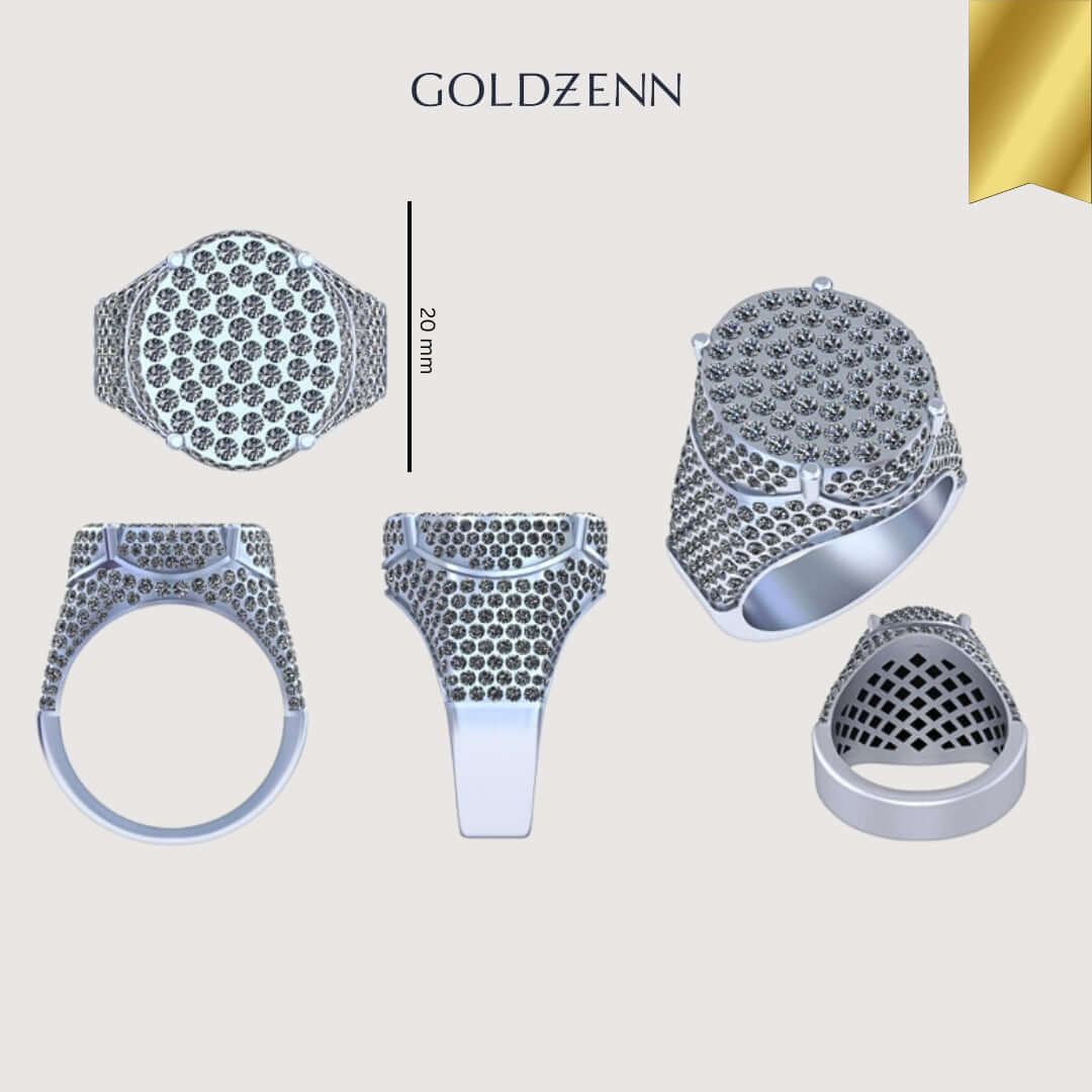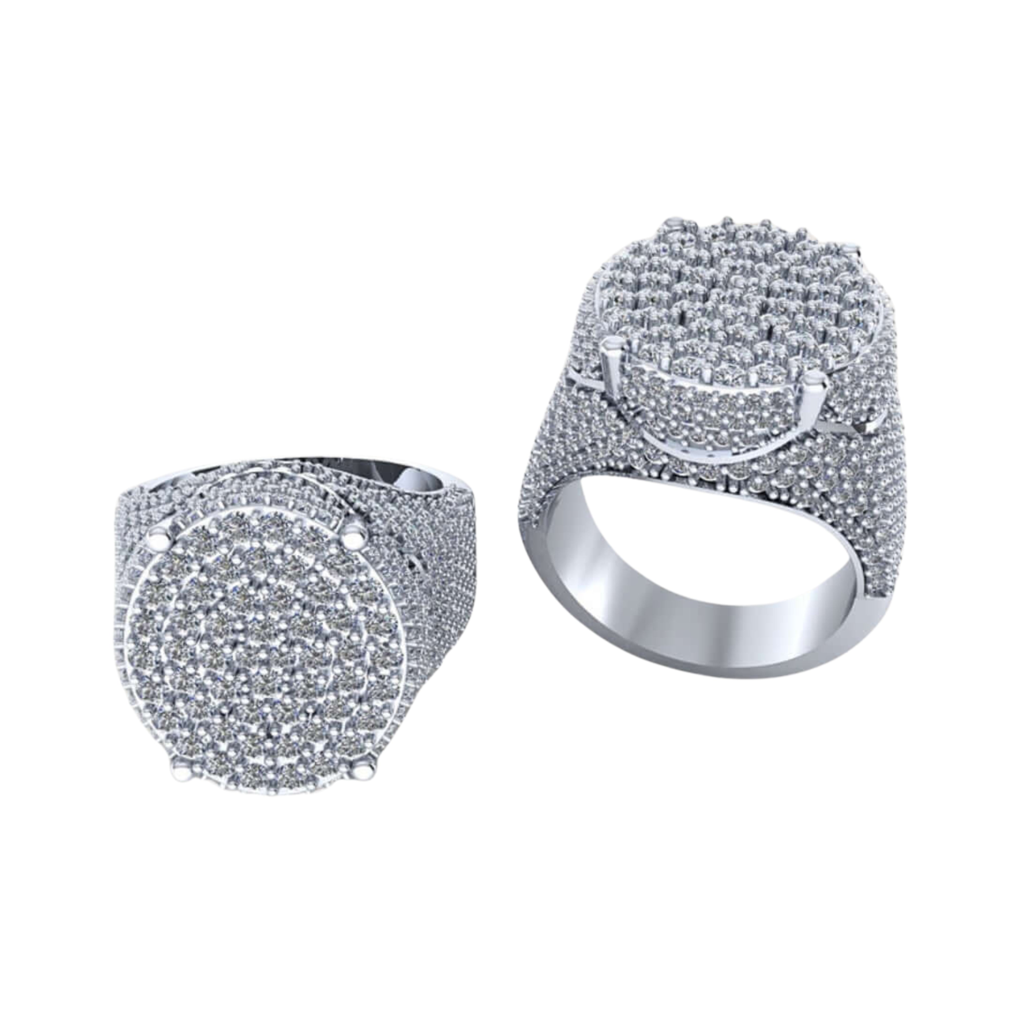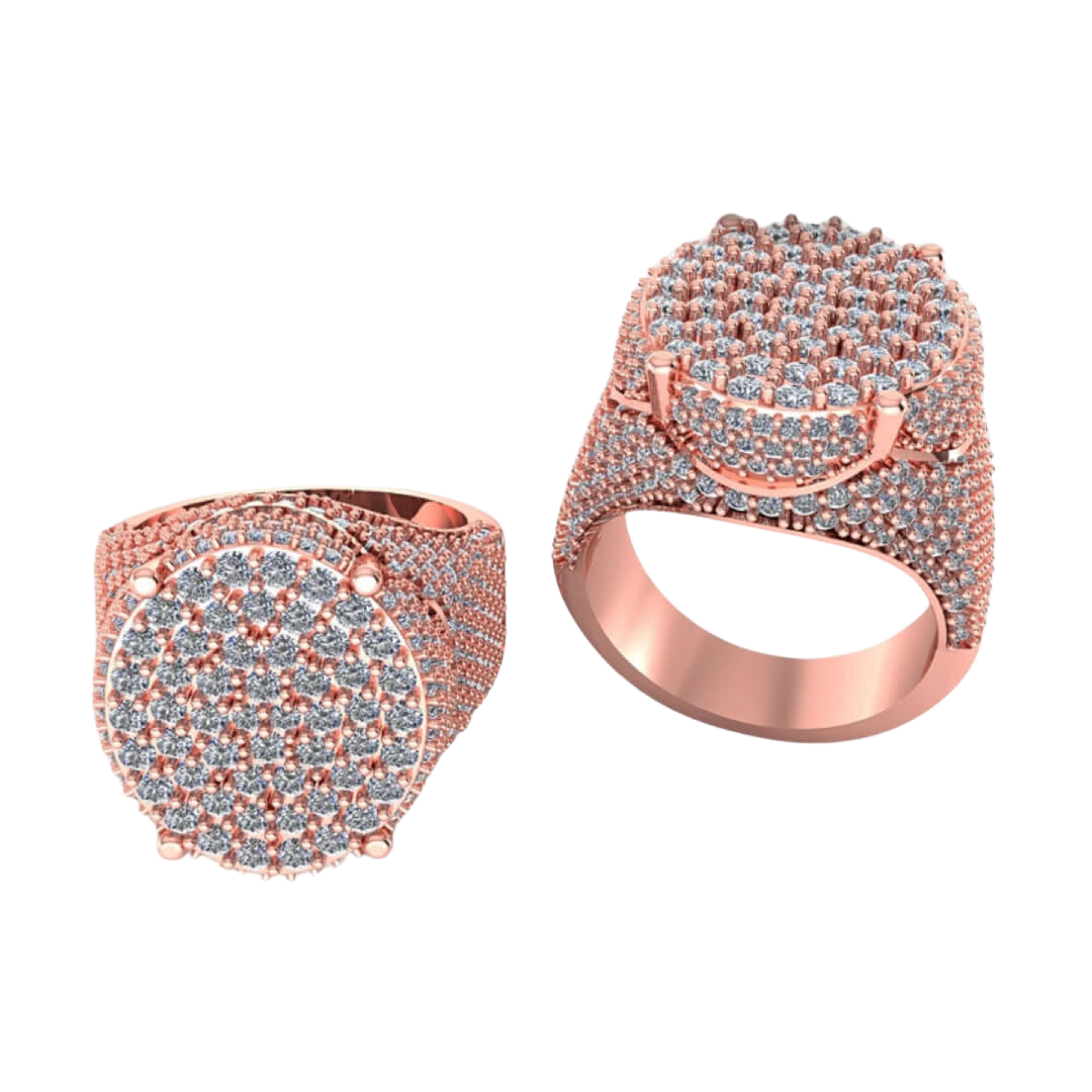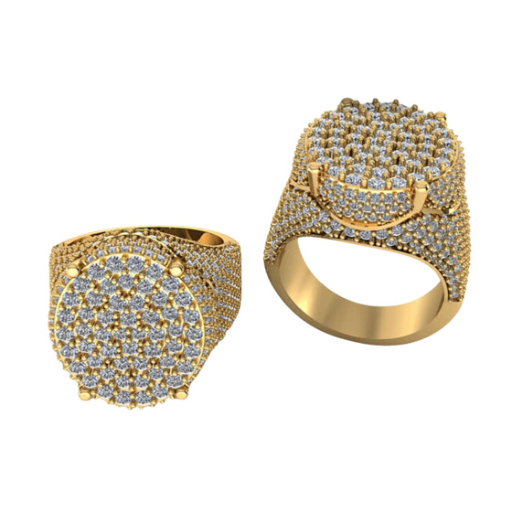 alt=" Shop the Round Pavé Diamond Ring with 4.58 CT lab-grown diamonds. Available in 10K, 14K, and 18K gold. Stunning gold men's rings. "