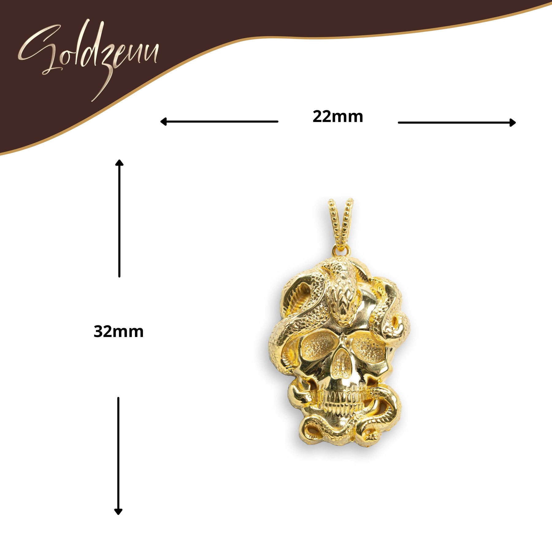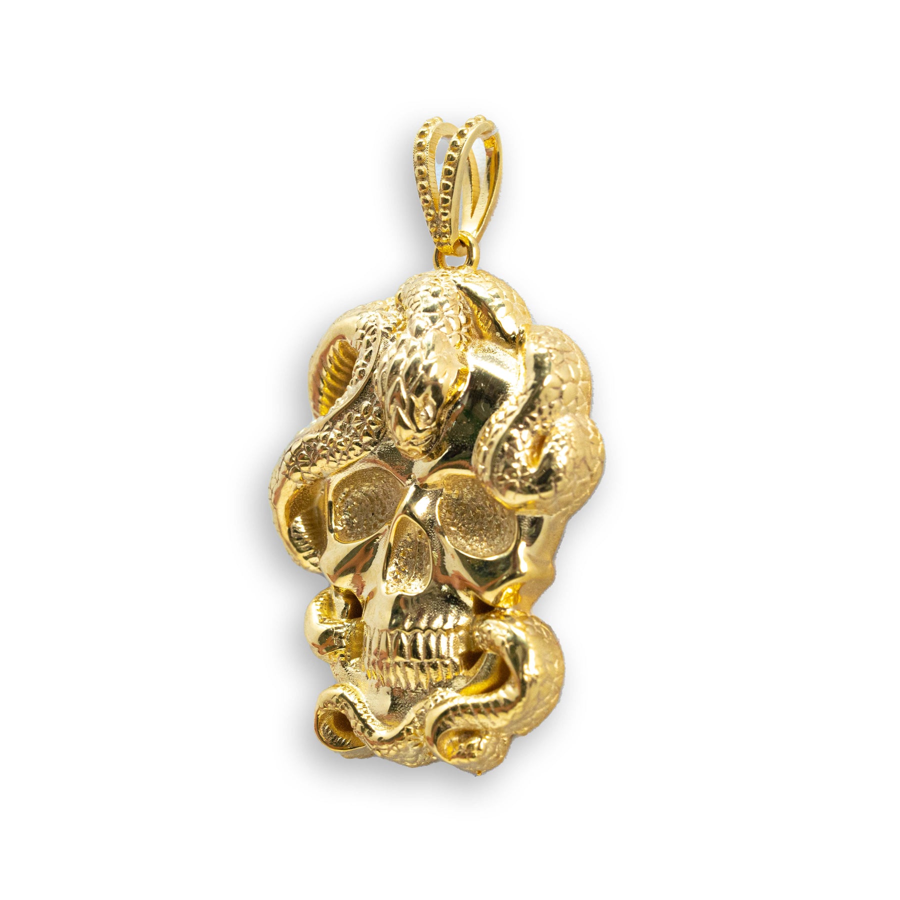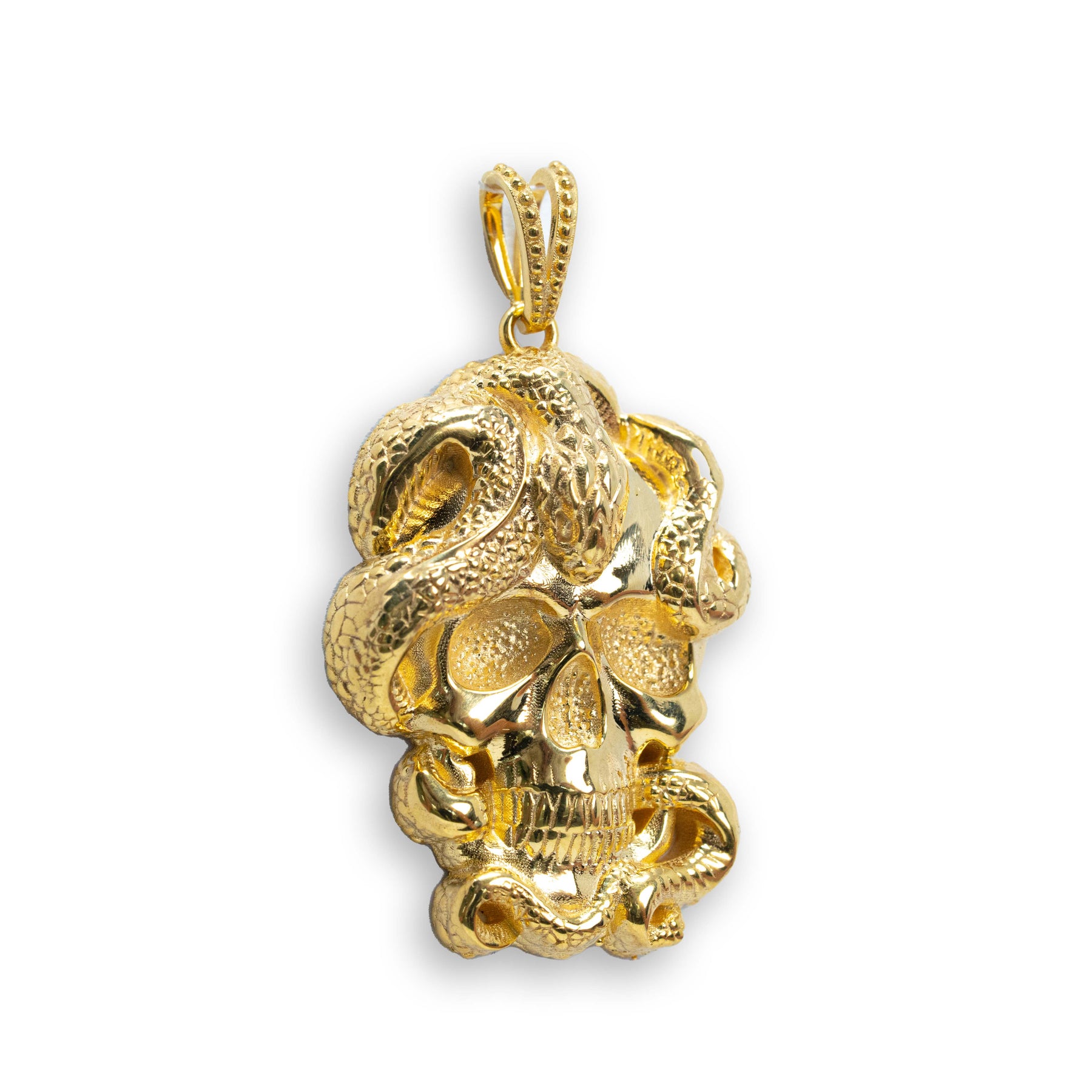 Alt="Discover the Snake Skull Pendant in 14K gold—a bold, edgy pendant for men who appreciate luxury and unique style. Perfect for making a statement."