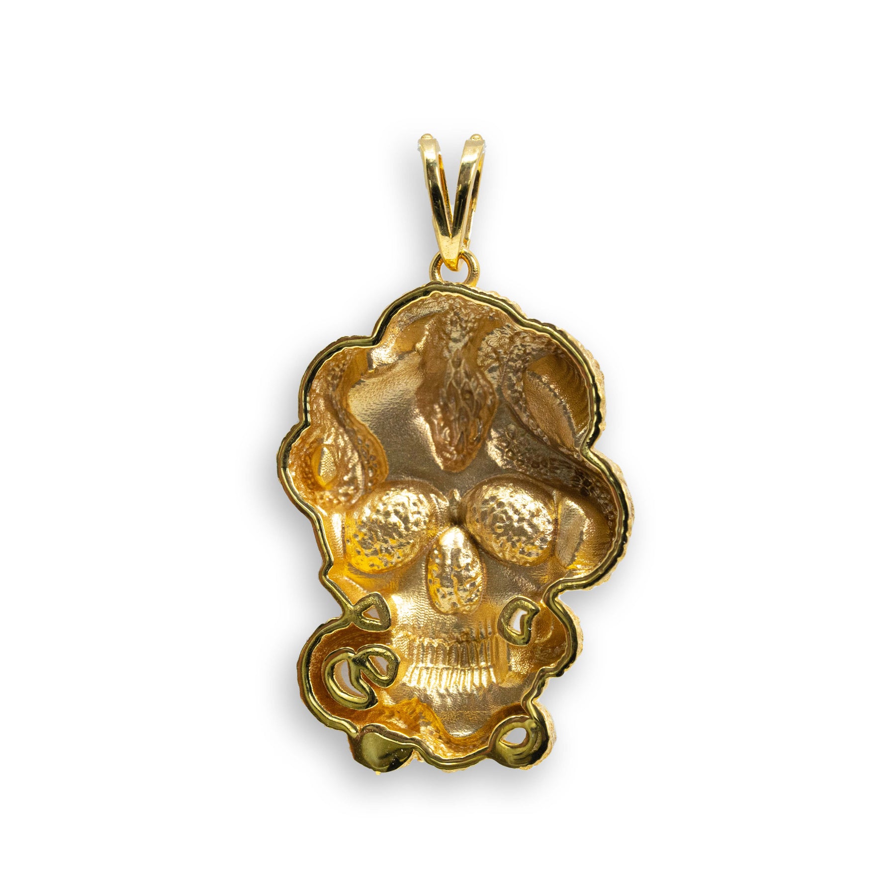 Embrace a fearless sense of style with the Snake Skull Pendant in 14K gold. This bold pendant combines the symbolic power of the skull with the mysterious allure of a coiled snake, creating a unique piece that resonates with those who live life unapologetically. Crafted with precision from high-quality 14K gold, this pendant exudes both resilience and sophistication, making it an ideal choice for modern men who appreciate statement jewelry with a luxurious edge. Pair it with a gold chain to complete a daring look or wear it solo to let its intricate details shine.