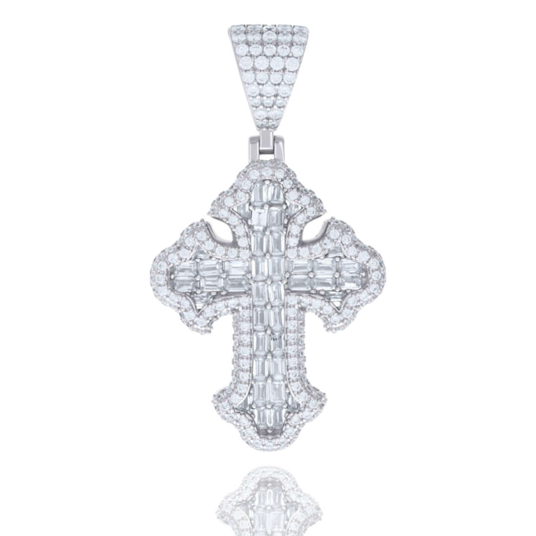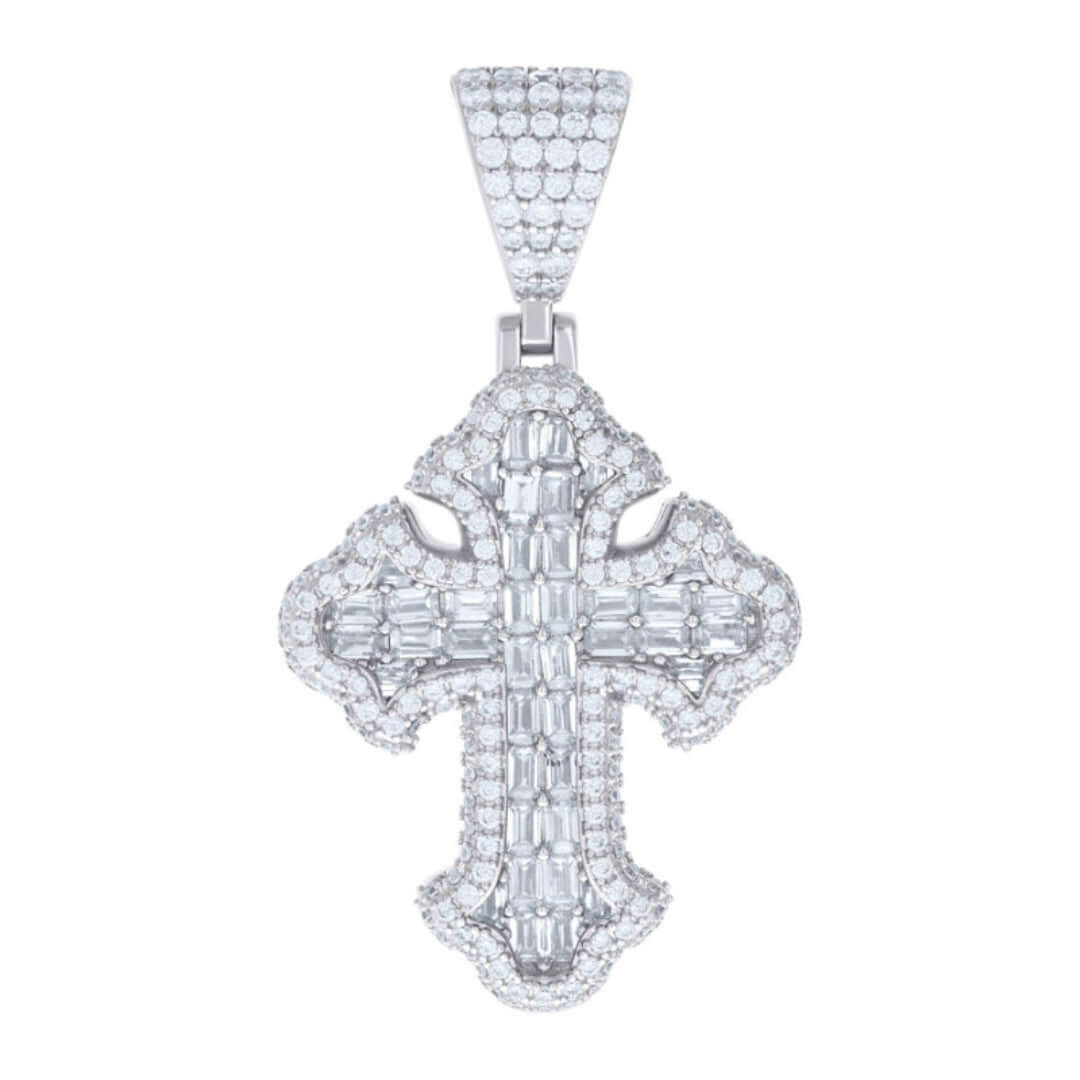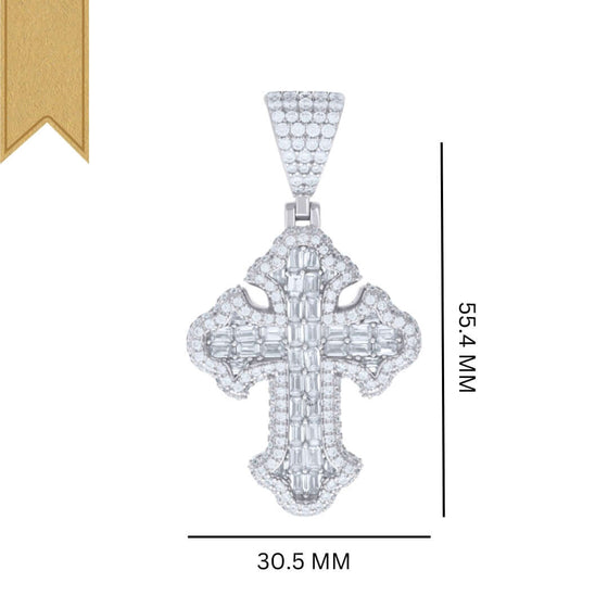 Alt="Crafted in 925 silver with VVS D-color moissanites, GOLDZENN’s 3.23 CTW Cross Pendant symbolizes faith. Hypoallergenic, tarnish-resistant & elegantly detailed."