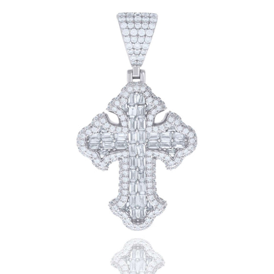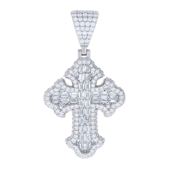 Silver 3.23 CTW Baguette Moissanite Cross Pendant