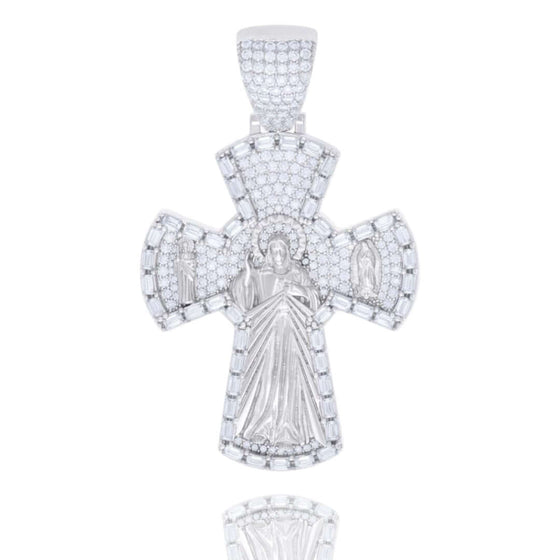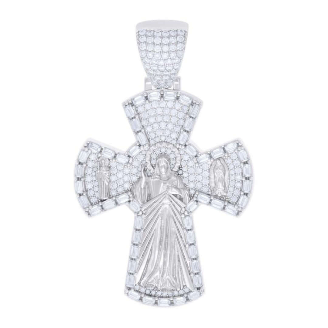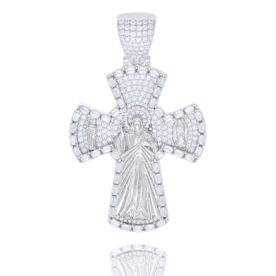 Alt="Crafted in 925 silver with VVS D-color moissanites, GOLDZENN’s Cross Charm Pendant symbolizes faith. Hypoallergenic, tarnish-resistant & elegantly crafted."