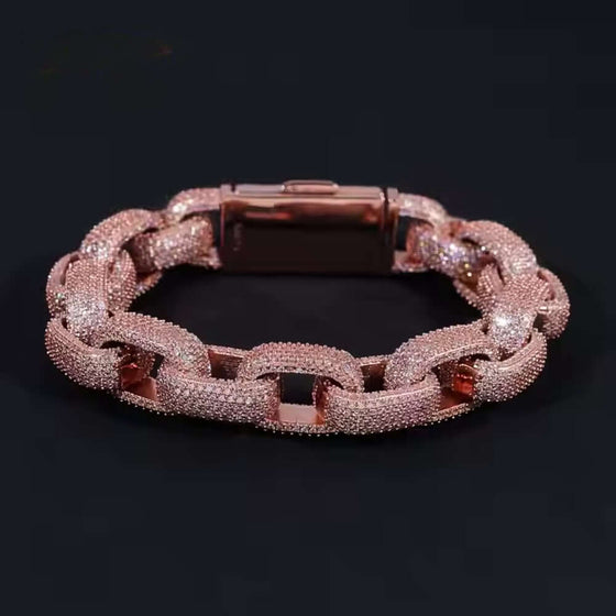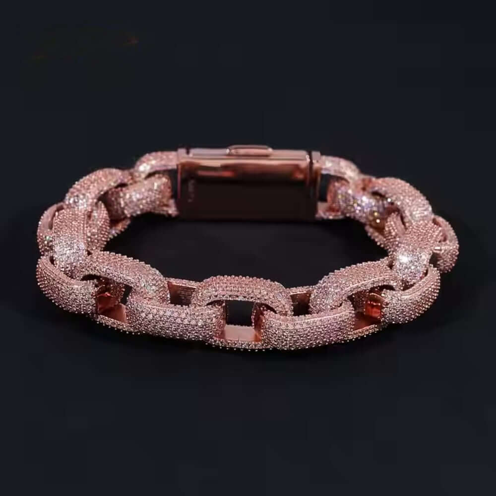 Crafted in hypoallergenic 925 sterling silver with a luxurious rose gold finish, the GOLDZENN Silver Moissanite Bracelet combines dazzling Moissanite stones with a bold 13mm design. The polished, tarnish-resistant links ensure lasting brilliance, while the secure lobster clasp guarantees a comfortable, adjustable fit. Lightweight yet durable, this bracelet transitions effortlessly from casual daytime wear to sophisticated evening ensembles. Presented in luxury packaging, it’s an ideal gift or a timeless addition to your jewelry collection, blending modern elegance with enduring craftsmanship.