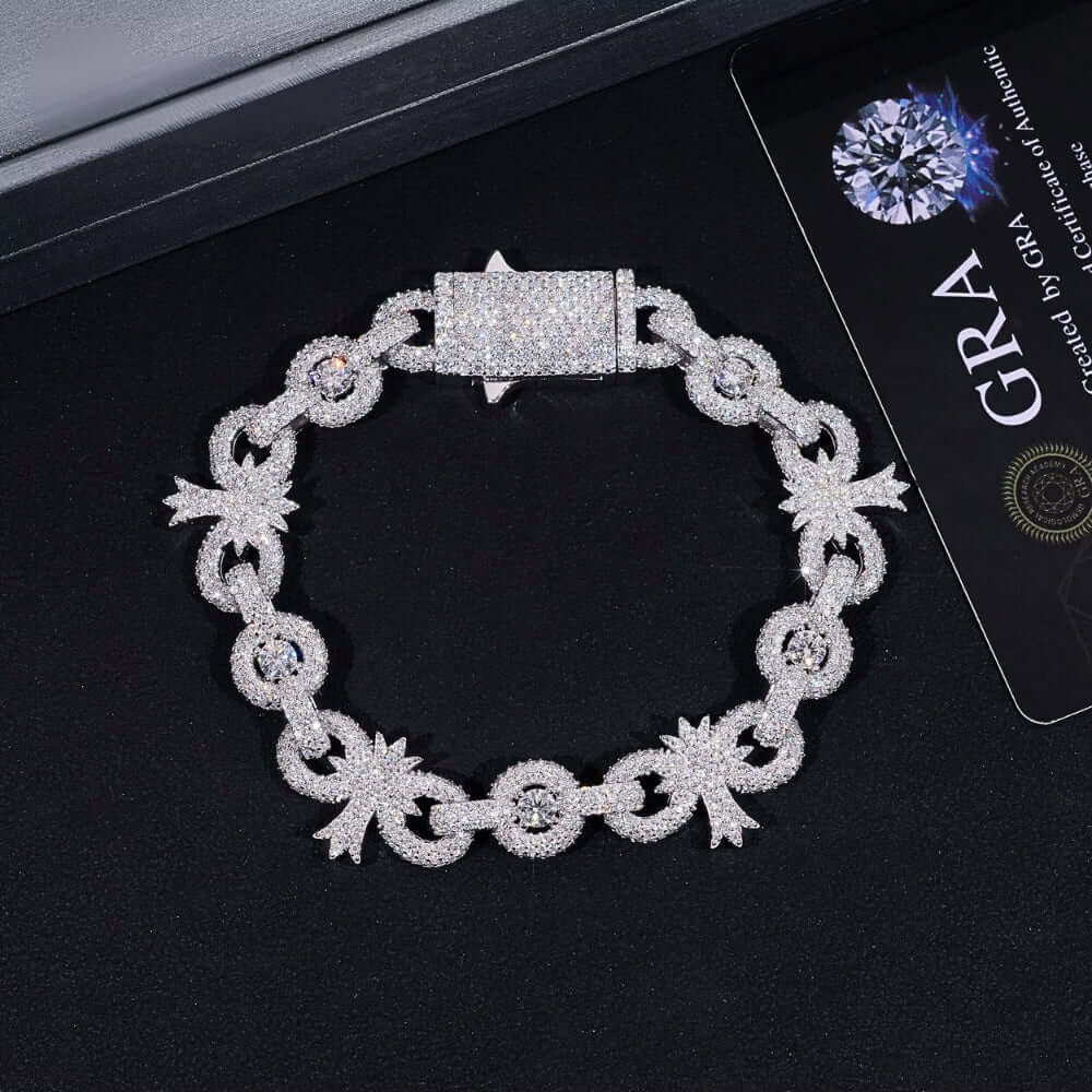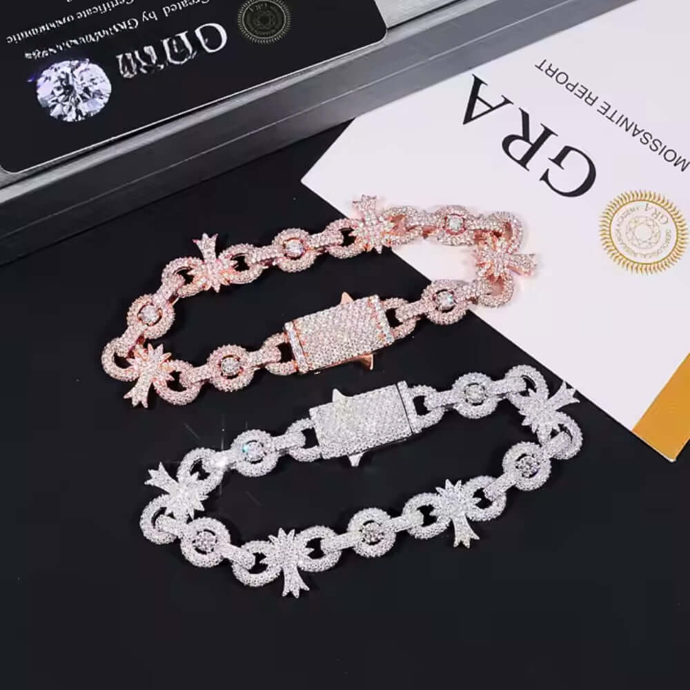 Crafted in hypoallergenic 925 sterling silver, the GOLDZENN Silver Moissanite Cross Infinity Bracelet merges symbolic cross and infinity motifs with dazzling moissanite stones for a design that balances faith and timeless elegance. The polished, tarnish-resistant links ensure lasting brilliance, while the secure lobster clasp provides a comfortable, adjustable fit. Lightweight yet durable, this silver moissanite bracelet transitions effortlessly from casual daytime wear to sophisticated evening ensembles. Ideal for layering or standalone statements, it arrives in luxury packaging as a meaningful gift or a bold addition to your jewelry collection, blending spiritual symbolism with modern craftsmanship.
