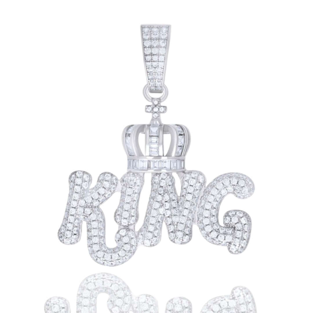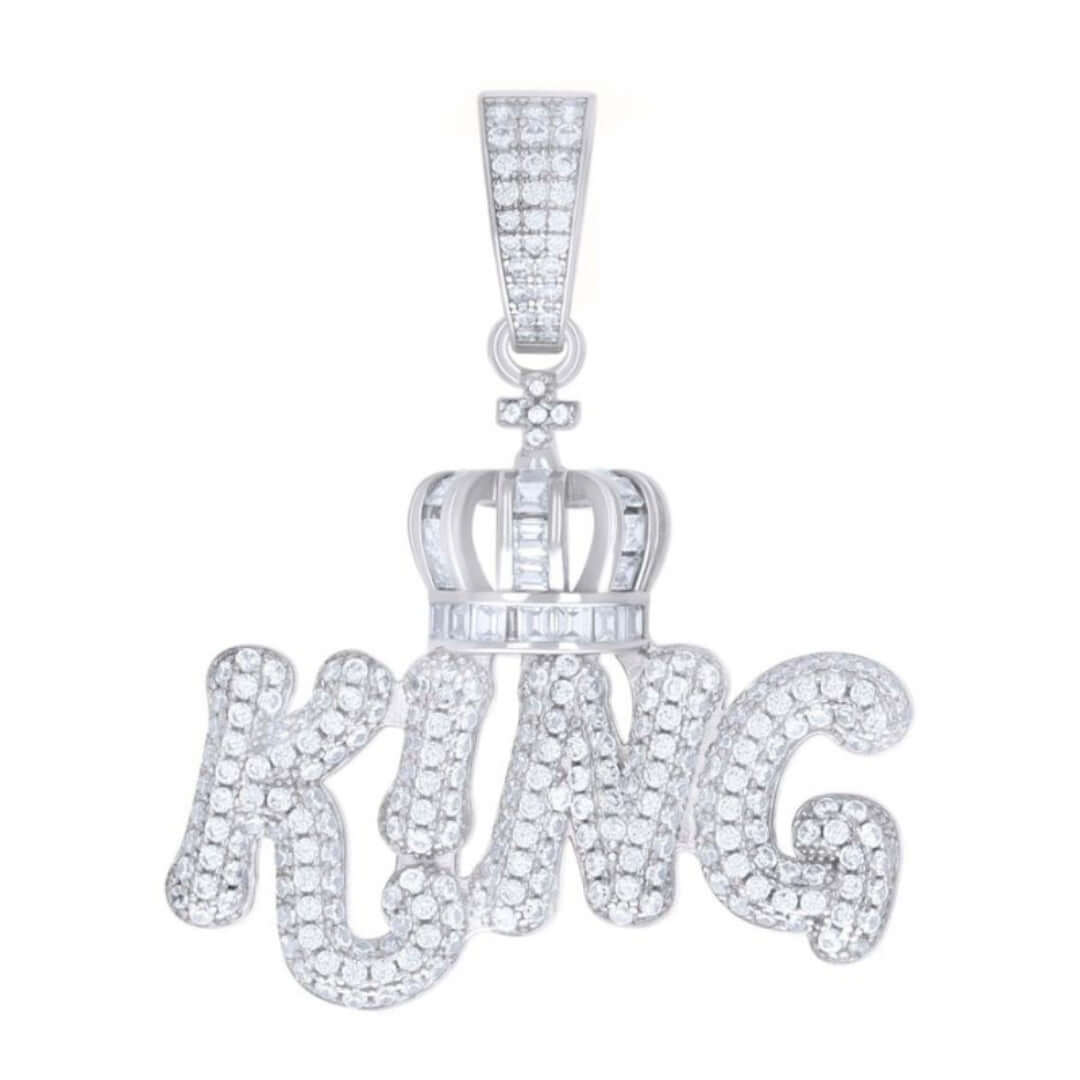 Alt="Crafted in 925 silver with VVS D-color moissanites, GOLDZENN’s King Charm Pendant embodies royal elegance. Hypoallergenic, tarnish-resistant & luxuriously detailed."