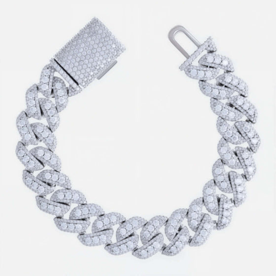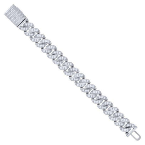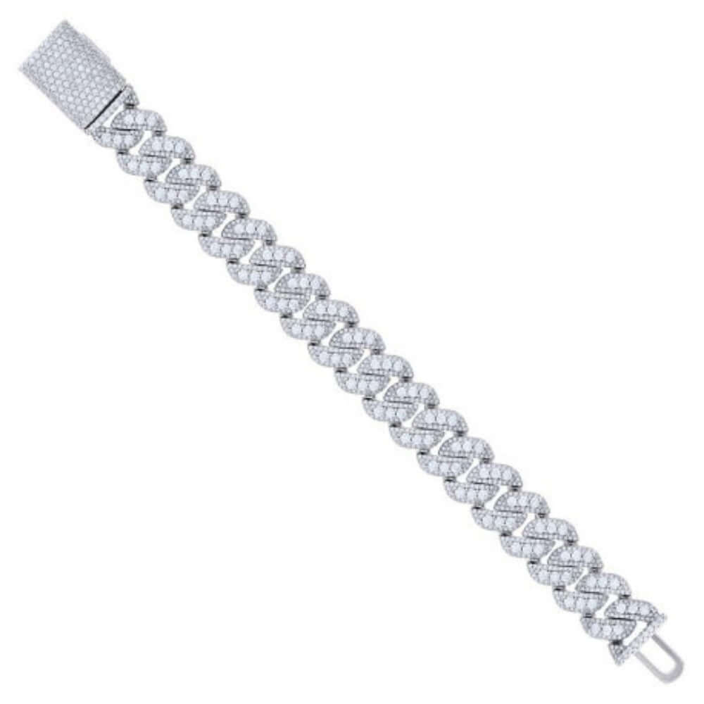 Silver Moissanite Pave Cuban Link Bracelet - 16mm
