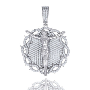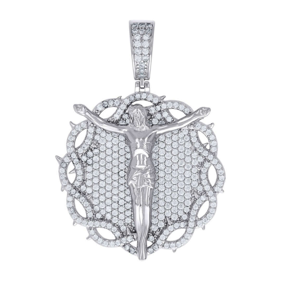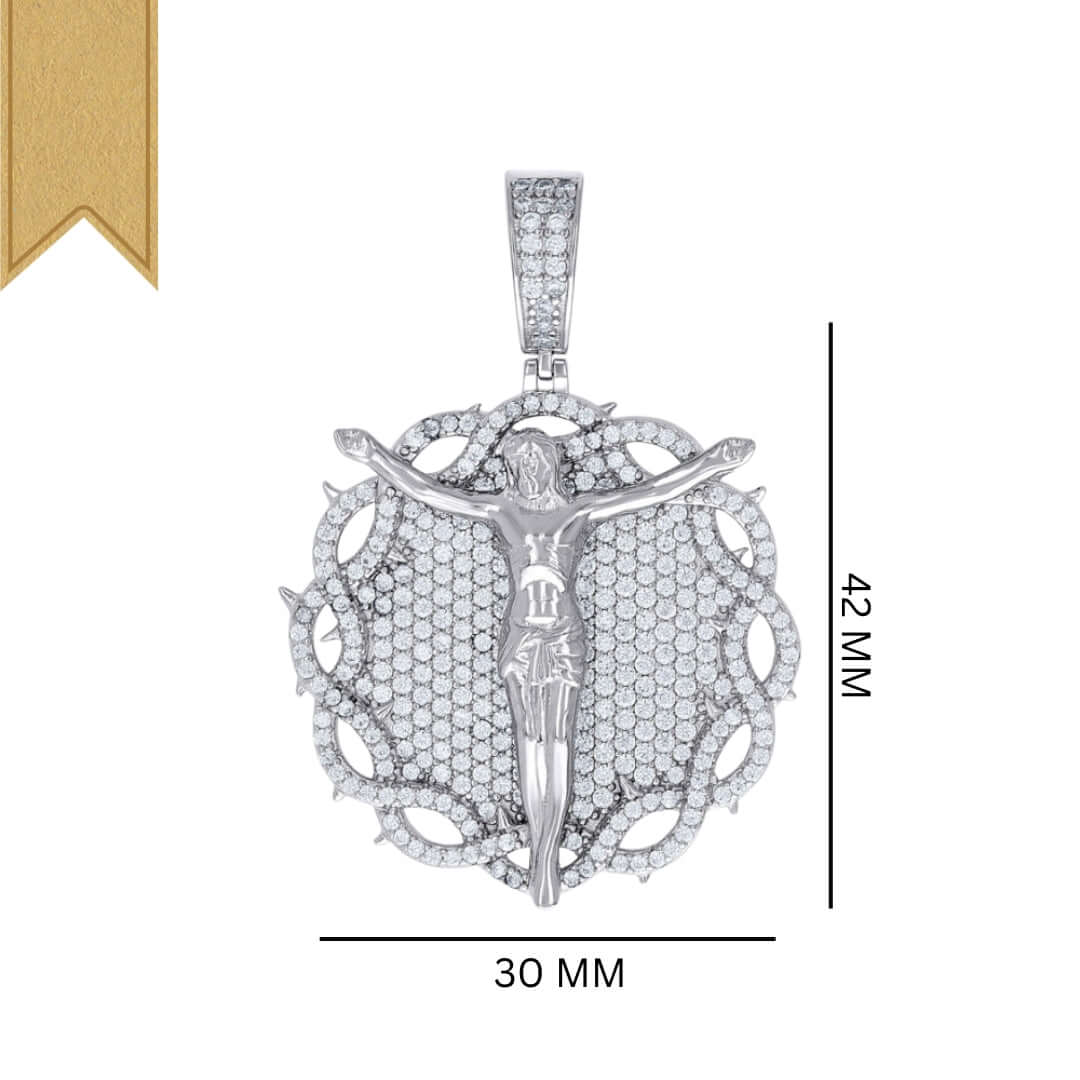 Alt="Crafted in 925 silver with VVS D-color moissanites, GOLDZENN’s Crucifix Pendant symbolizes faith. Hypoallergenic, tarnish-resistant & elegantly crafted."