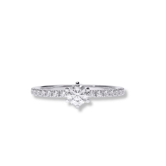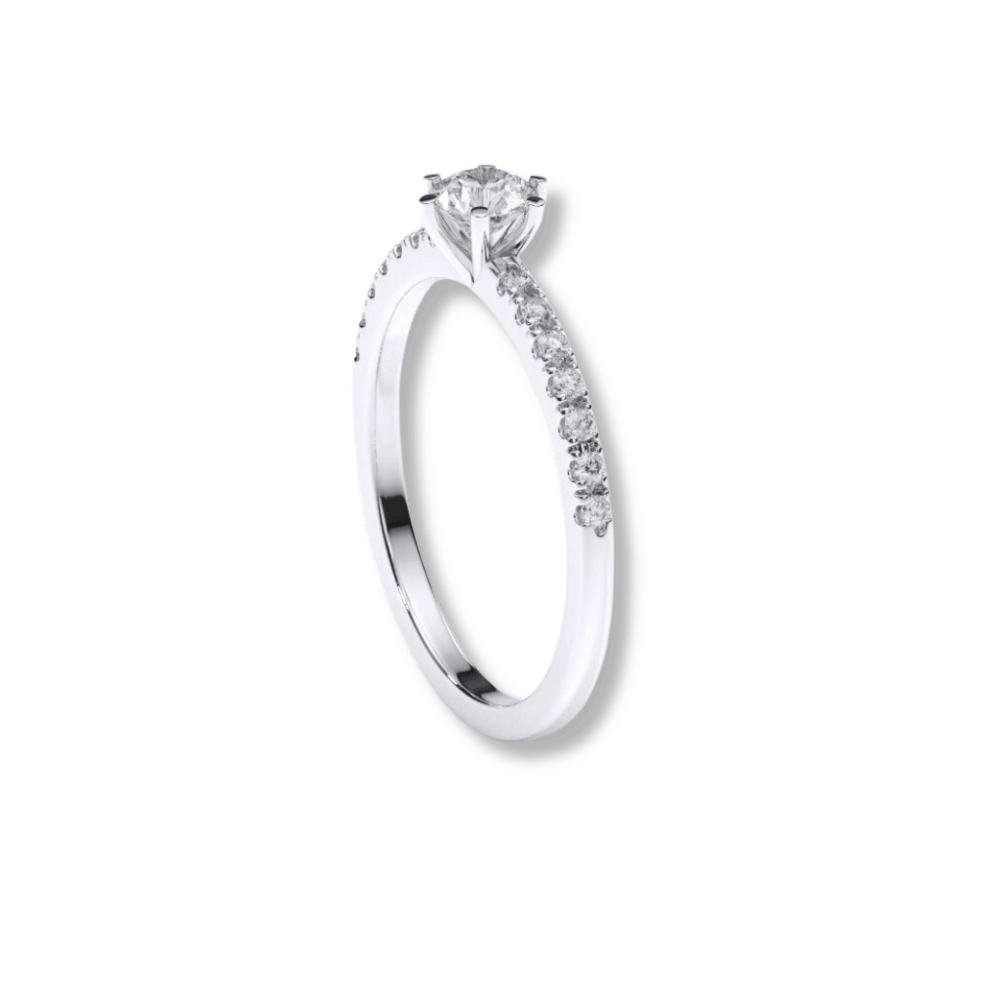 Elevate your love story with the Classic Solitaire Lab Diamond Ring with Dazzling Pavé Accents. This stunning engagement ring features a brilliant lab-grown diamond in a timeless solitaire setting, enhanced by shimmering pavé accents along the band. Crafted from 14K gold, the pavé detailing adds an extra layer of sparkle and sophistication. Perfect for those seeking a modern twist on a classic design, this gold engagement ring is a standout choice among womens engagement rings, combining elegance, luxury, and sustainability.