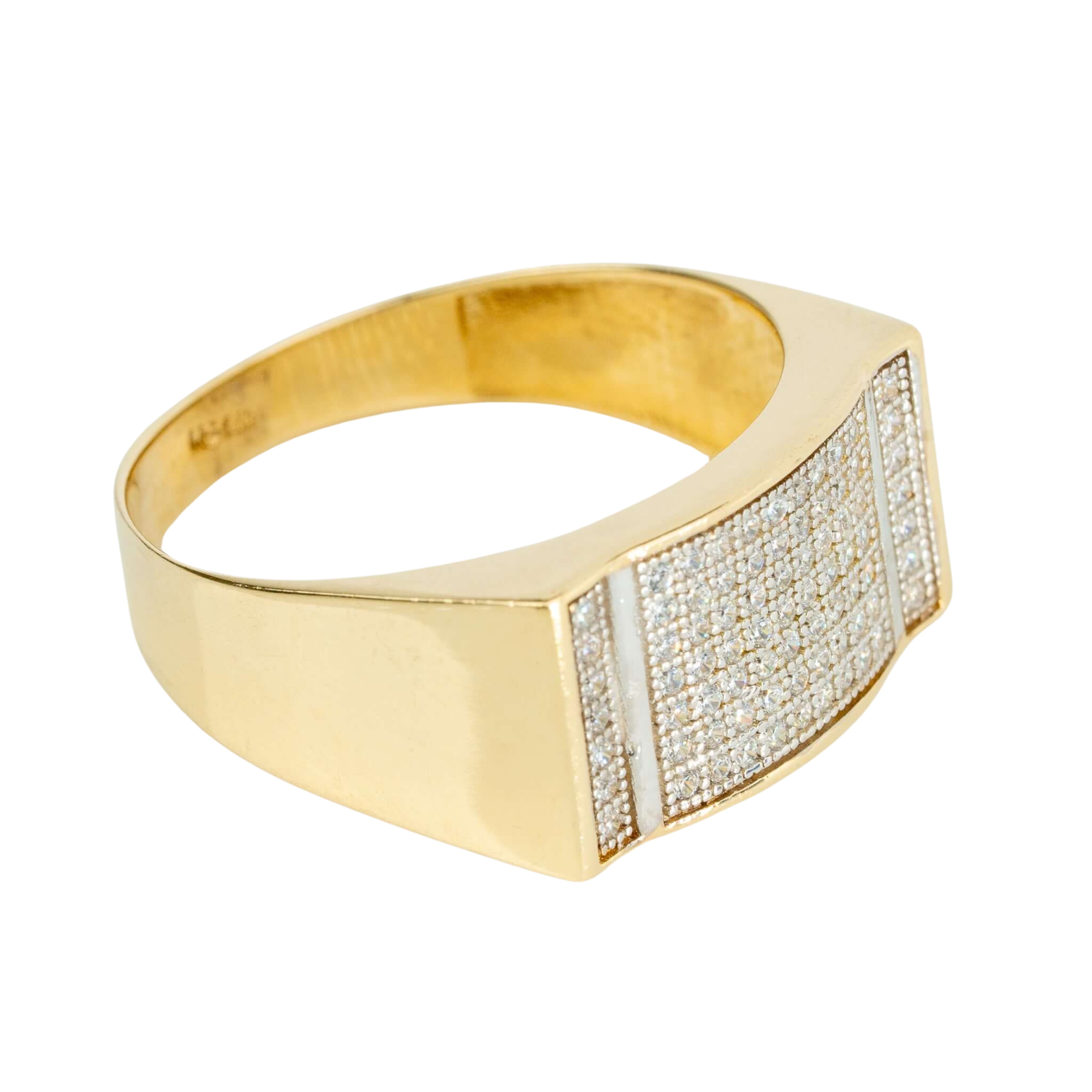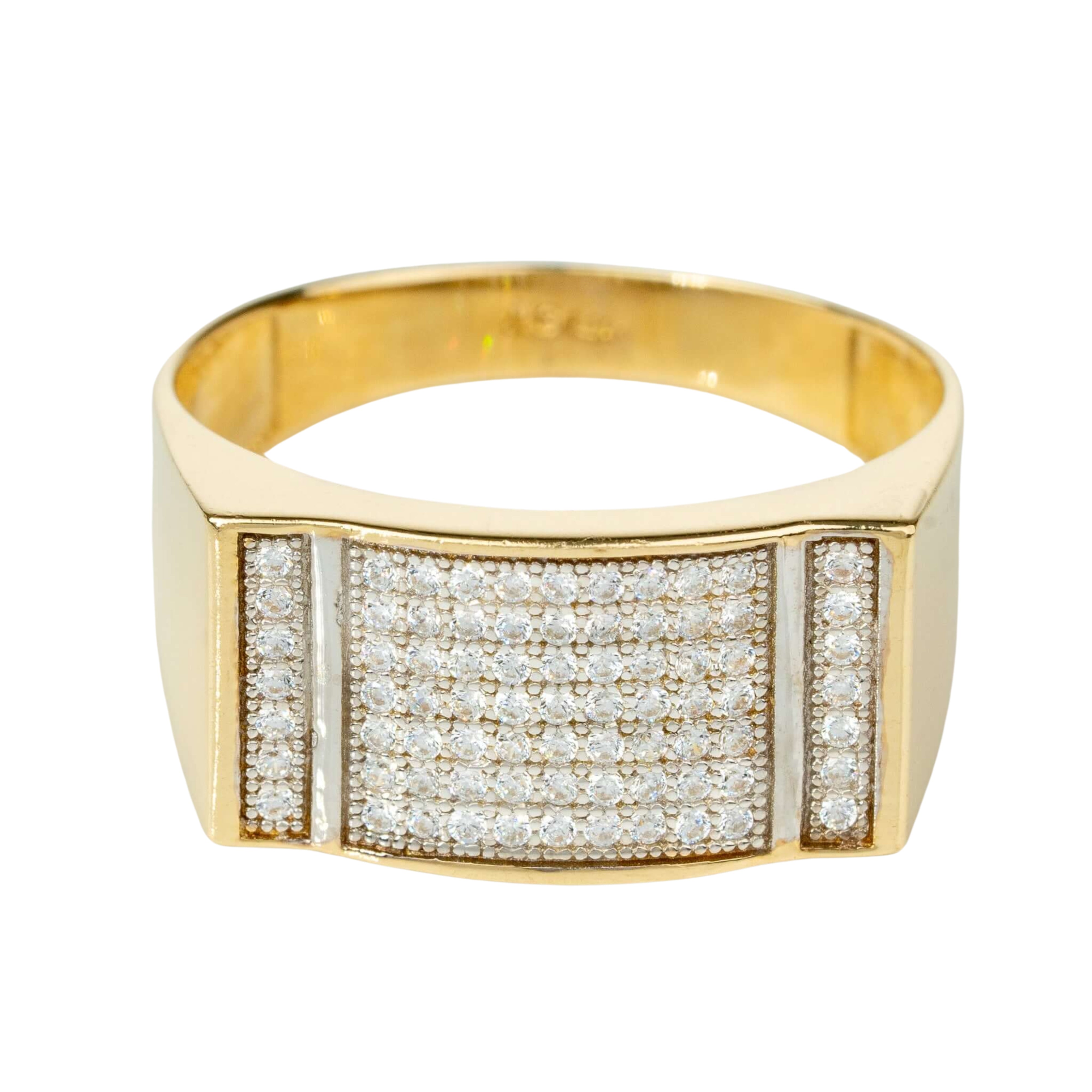 The Square Gold Ring is made of luxurious 14K gold, accented with dazzling CZ stones. It's perfect for the man who has an appreciation for the finer things in life and maybe likes to accentuate his style with a bit of modern flair. With a sleek square face perfectly complemented by the brilliance of high-quality cubic zirconia stones, this ring is made from 14K gold that guarantees durability and timelessness for formal wear and daily wear.