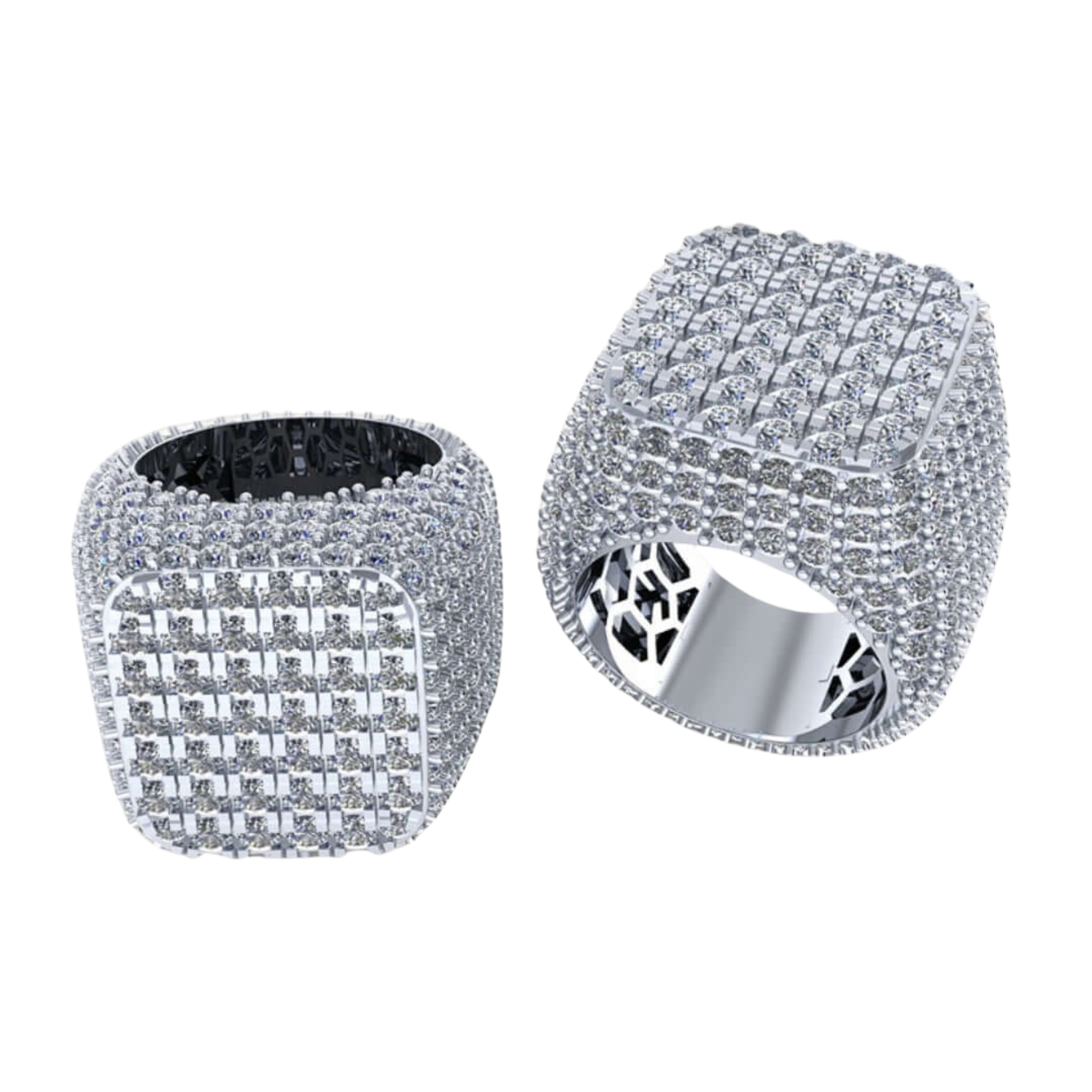 Square Pavé Diamond Ring – 18 CT Gold Statement