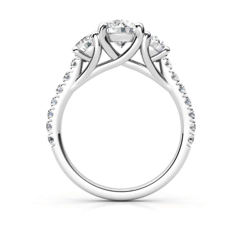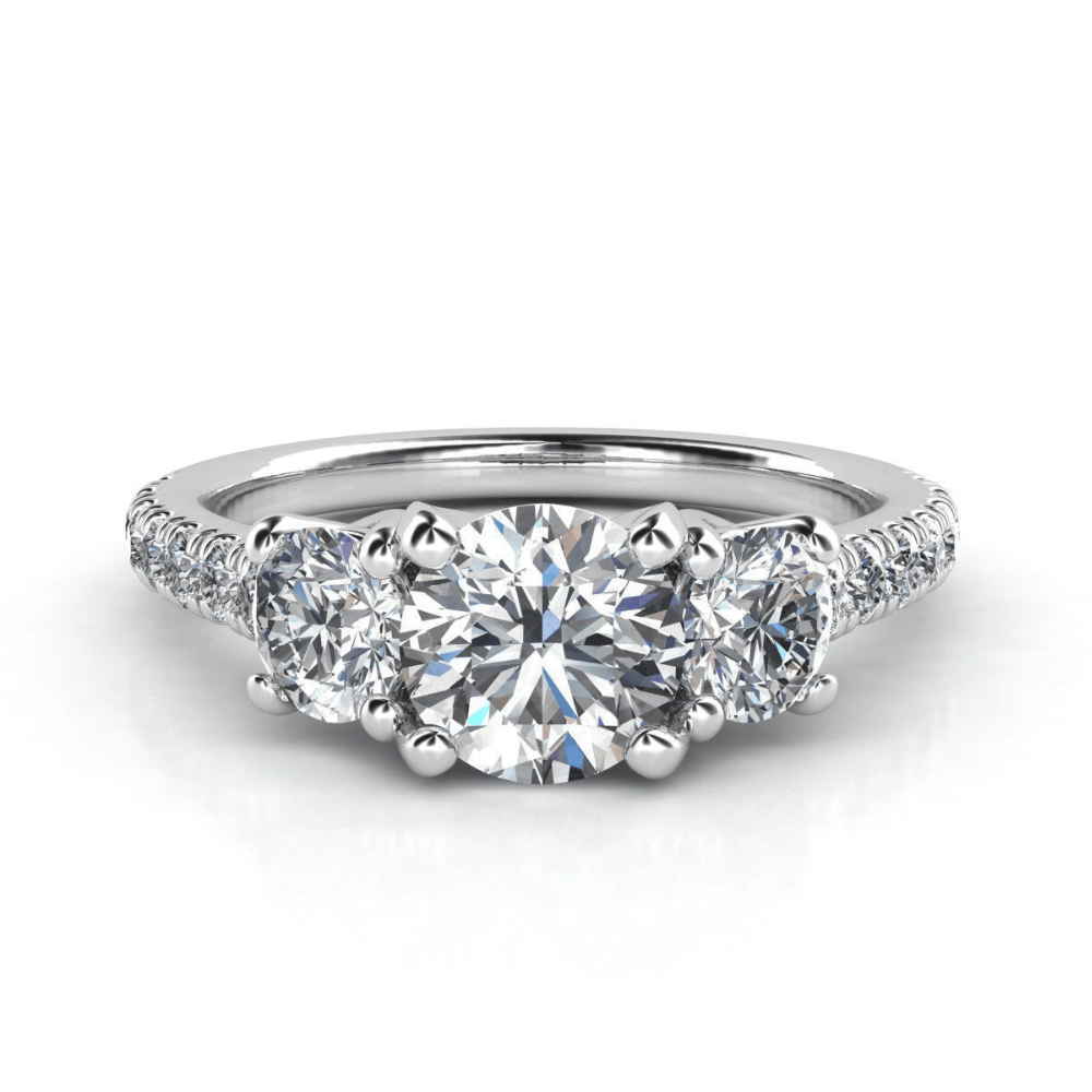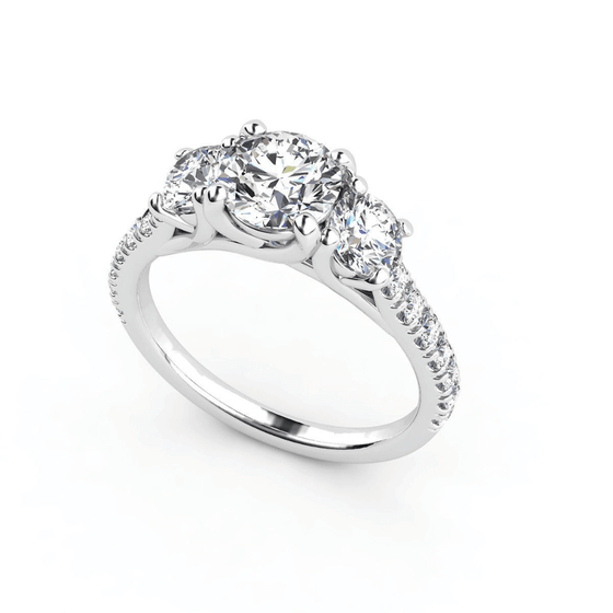 alt=" Discover the Three-Stone Lab Diamond Engagement Ring in White Gold. Featuring a 2.00 CT center lab diamond and side stones, this elegant trio design is timeless and luxurious. "