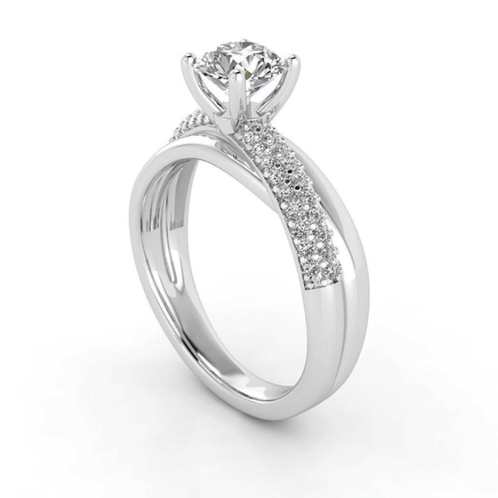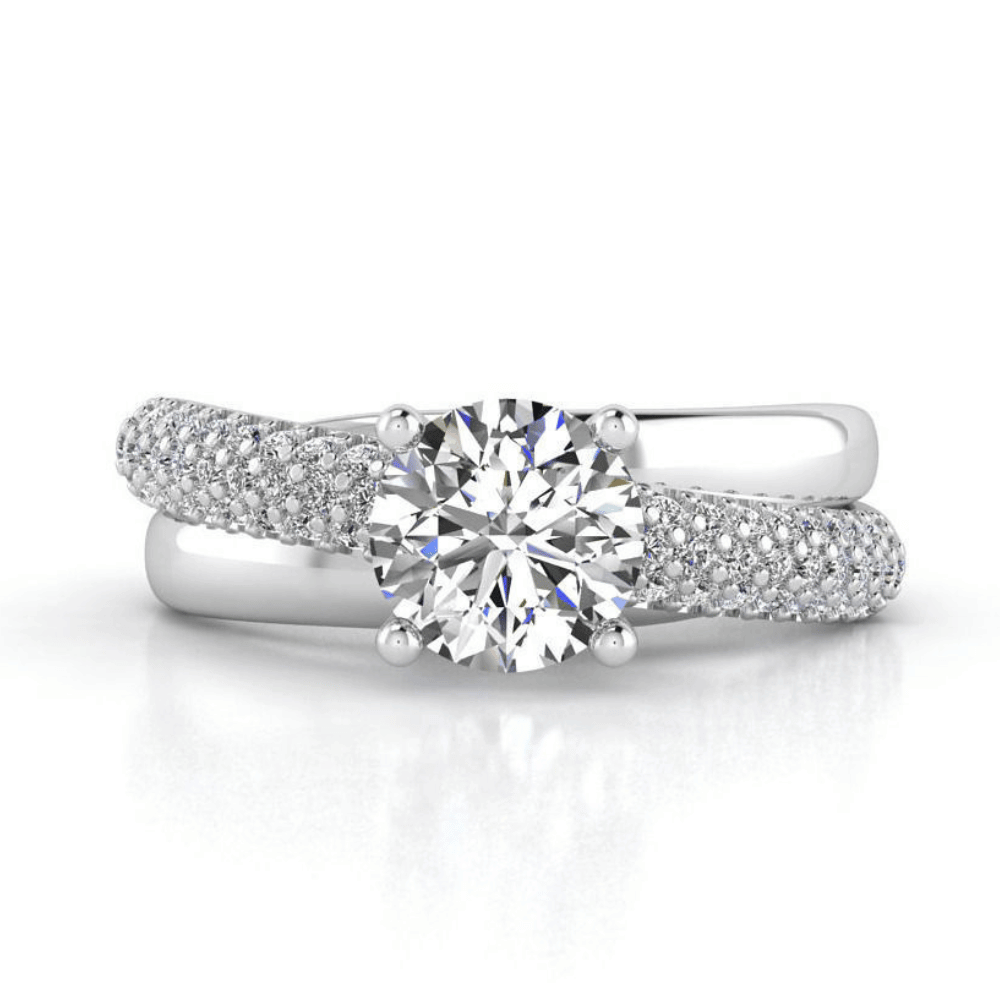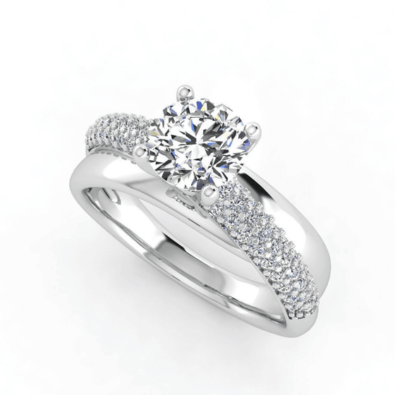 Triple Row Pavé Band Lab Diamond Engagement Ring with Round Center