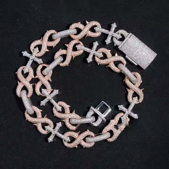 Crafted in hypoallergenic 925 sterling silver, the GOLDZENN Two-Tone Cross Moissanite Necklace merges spiritual symbolism with dazzling VVS moissanites in pristine D color. The 16mm cross motif, set with meticulously placed stones, is polished to a tarnish-resistant finish for enduring brilliance. Featuring a secure lobster clasp and a sleek two-tone chain design, this moissanite diamond chain necklace transitions effortlessly from daily wear to sacred occasions. Lightweight and versatile, it arrives in luxury packaging, embodying GOLDZENN’s dedication to craftsmanship, timeless elegance, and faith-inspired style.