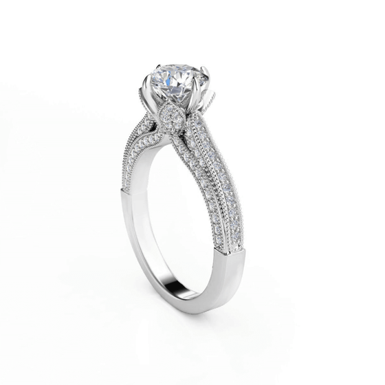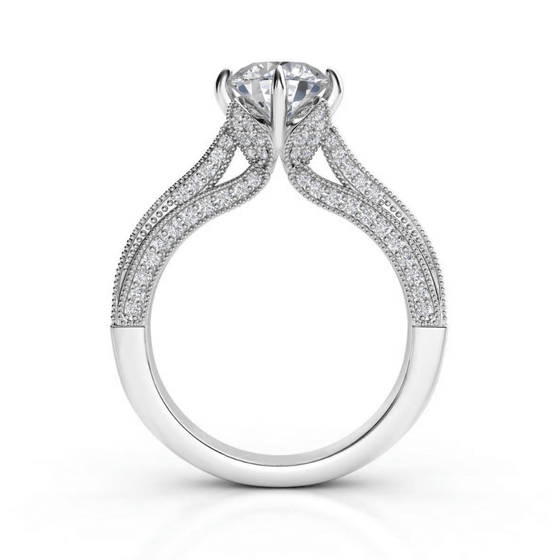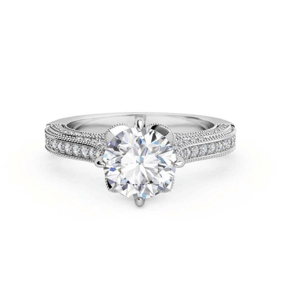 Vintage Milgrain Solitaire Lab Engagement Ring with Pavé Diamond Band